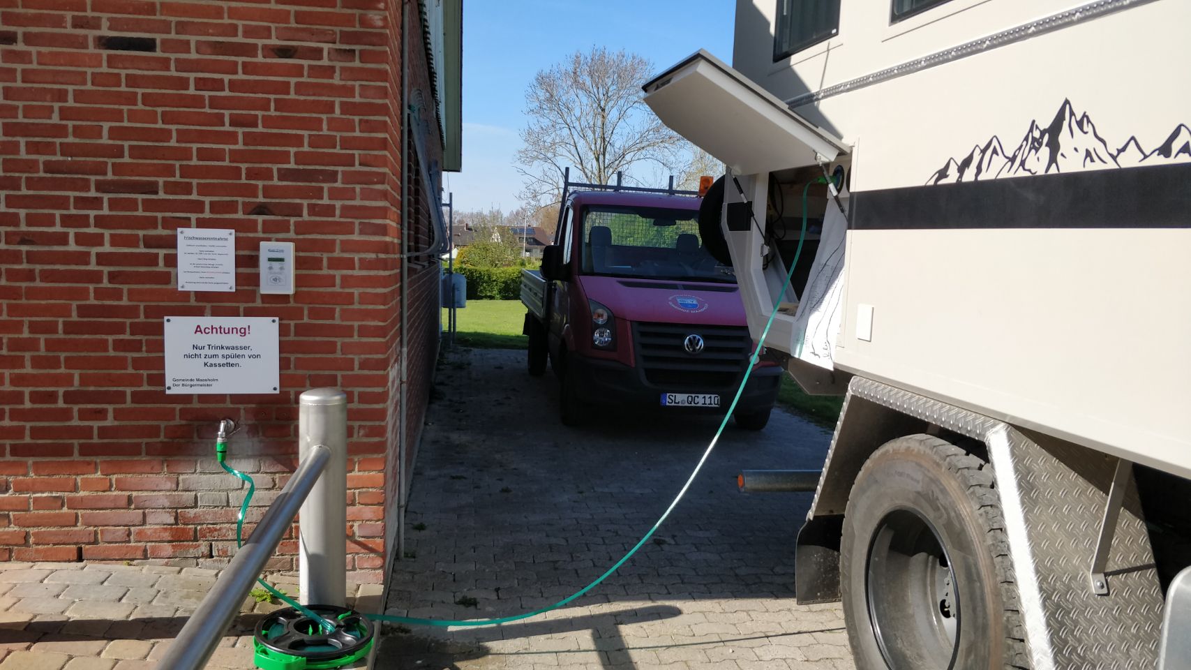 Hier „tanken“ wir zum ersten Mal unsere Wassertanks abseits des heimischen Wasserhahns auf – hat geklappt 💪✅ – und außerdem ein bisschen Ruhe nach den ersten trubeligen Reisetagen 🧘🏼♀️.
