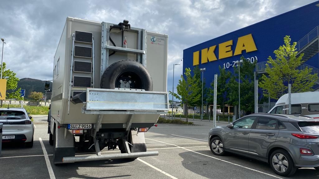 Wir haben den Tipp von anderen Wohnmobilisten bekommen, dass man außerhalb von Bergen bei IKEA Åsane auf dem Parkplatz stehen kann und zudem von dort ein (Gratis-)Bus ins Zentrum von Bergen fährt – cool …🤔😎😃