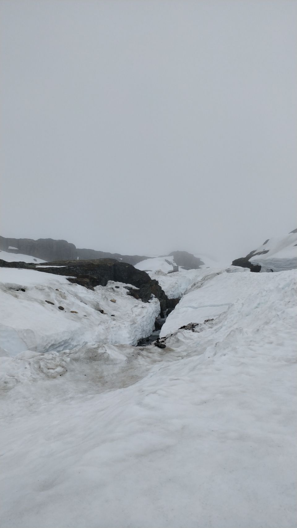 Jetzt aber los zum Geiranger 🚚💨 Der Geirangerfjord ist einer der bekanntesten Fjorde Norwegens und gehört zum UNESCO-Weltnaturerbe. Die Geirangerstraße ist ca. 24 km lang und schmal, durch enge Kurven und Serpentinen führt sie (aktuell Anfang Juni!!!) durch Schnee und Eis am höchsten Punkt auf 1038 m. Unser geplanter Stellplatz seitlich der Straße war leider unter der weißen Decke nicht zu finden 👀🏔️. Wir haben trotzdem einen Stopp gemacht und Cuba hat seine erste Schnee- und Wintererfahrung (nochmal: im JUNI…) erlebt – er fand’s natürlich klasse 🐕⛄❄️. Leider konnte man vor lauter Wolken nix sehen, schon gar nicht den Fjord, und der hoch gelegene See war noch komplett zugefroren. 😞🤷🏼♀️.