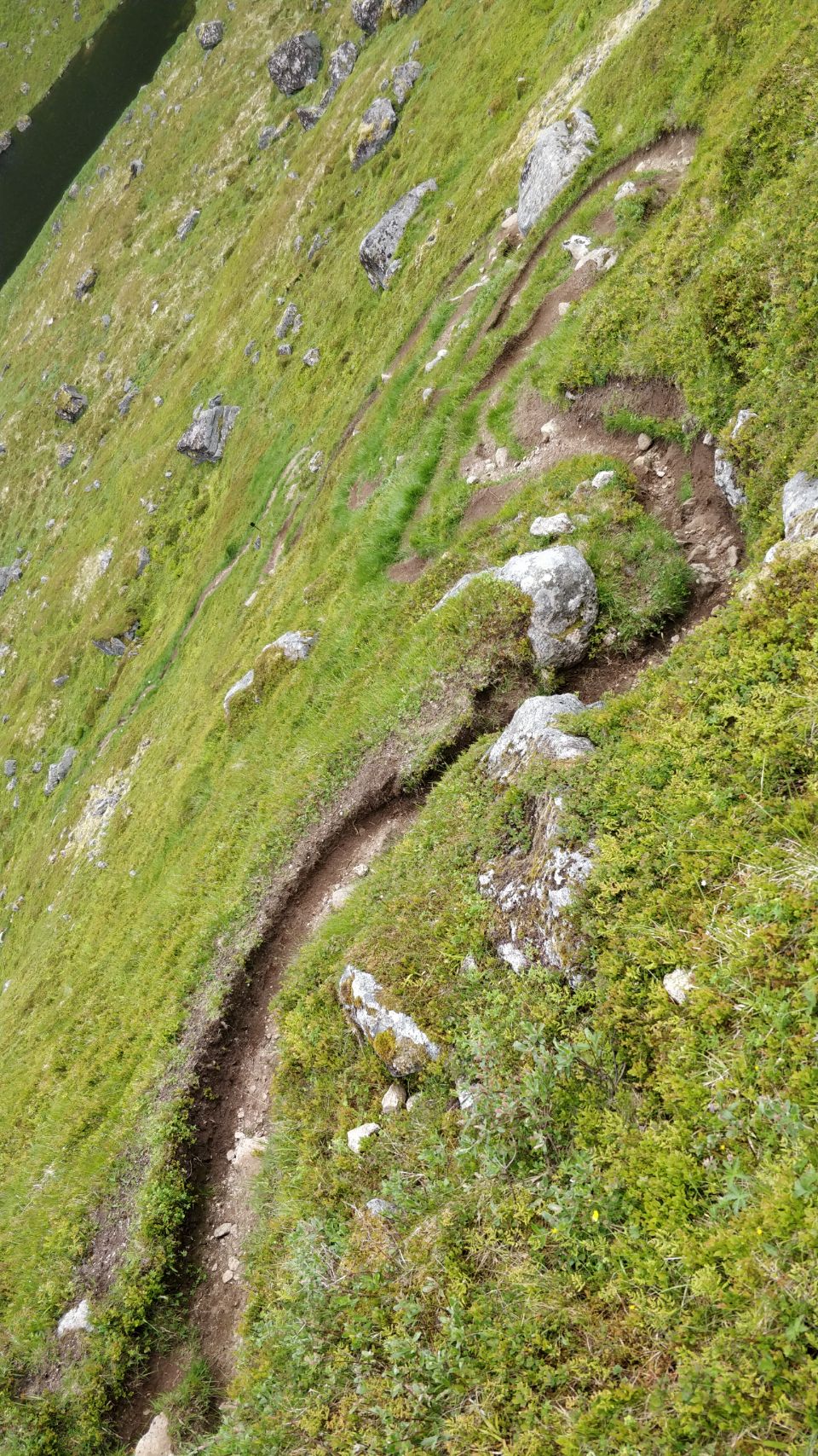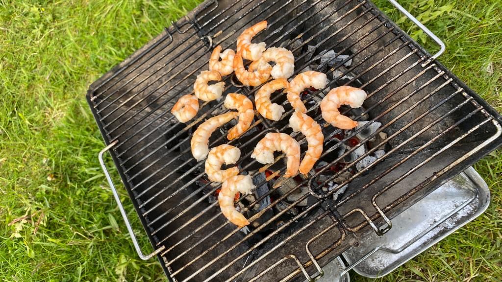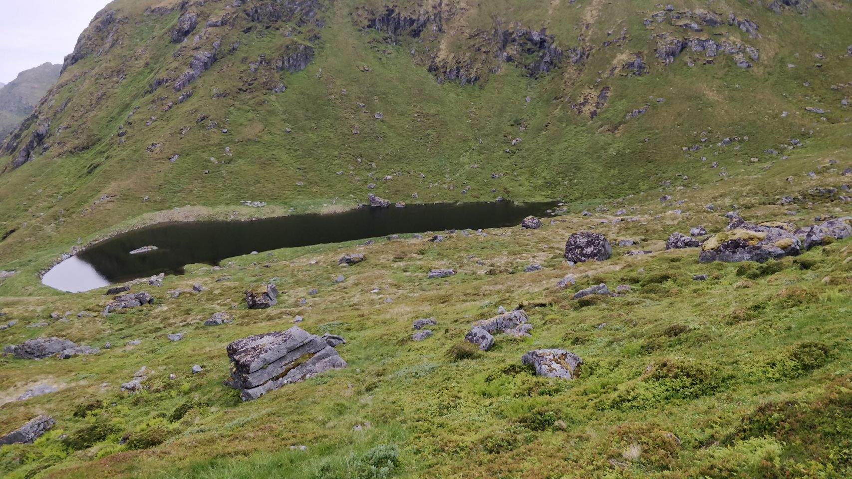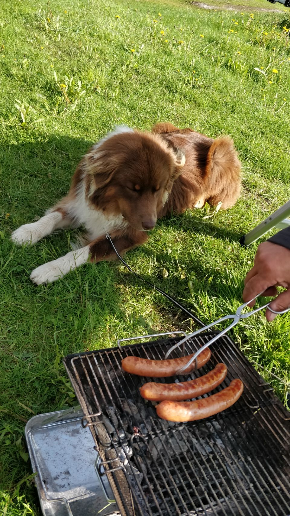 Heute steht eine Tagestour auf den Ytresandheia auf dem Programm. Laut Beschreibung im Internet „familientauglich“, „Schwierigkeitsgrad leicht“… da ich ja immer noch fußlahm bin, aber nicht die ganze Zeit im oder vorm KRÜMEL rumhängen will, erschien diese Wanderung machbar. Leider ist ja immer alles relativ und mir würden hier – auch mit ohne Fußweh – nicht unbedingt die Attribute leicht und familientauglich einfallen, aber gut. Was man anfängt, will man auch zu Ende bringen, also rauf auf den Berg. Im Nachhinein erweist sich dieser Ehrgeiz eher als kontraproduktiv: oben angekommen werden wir leider nicht mit einer phantastischen Aussicht belohnt 😠, sondern mit Schietwetter und Wolken. Tapfer ziehen wir unser Picknick auf dem Plateau durch, bis es uns endgültig zu kalt wird und wir wieder absteigen. So gesehen war der Ausflug fußttechnisch ein Minusgeschäft. Dafür ist es dann abends schön (na toll 😤), so dass wir wenigstens nochmal grillen können 🥩🥖🍻 und ein paar schöne Strandaugenblicke genießen.