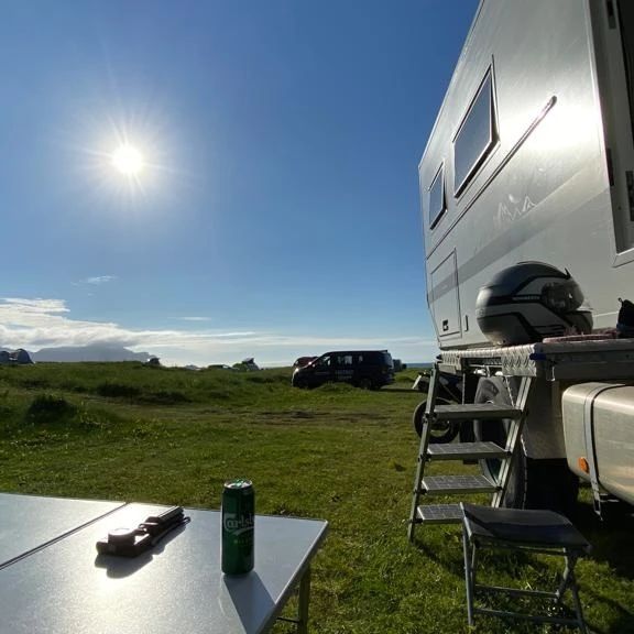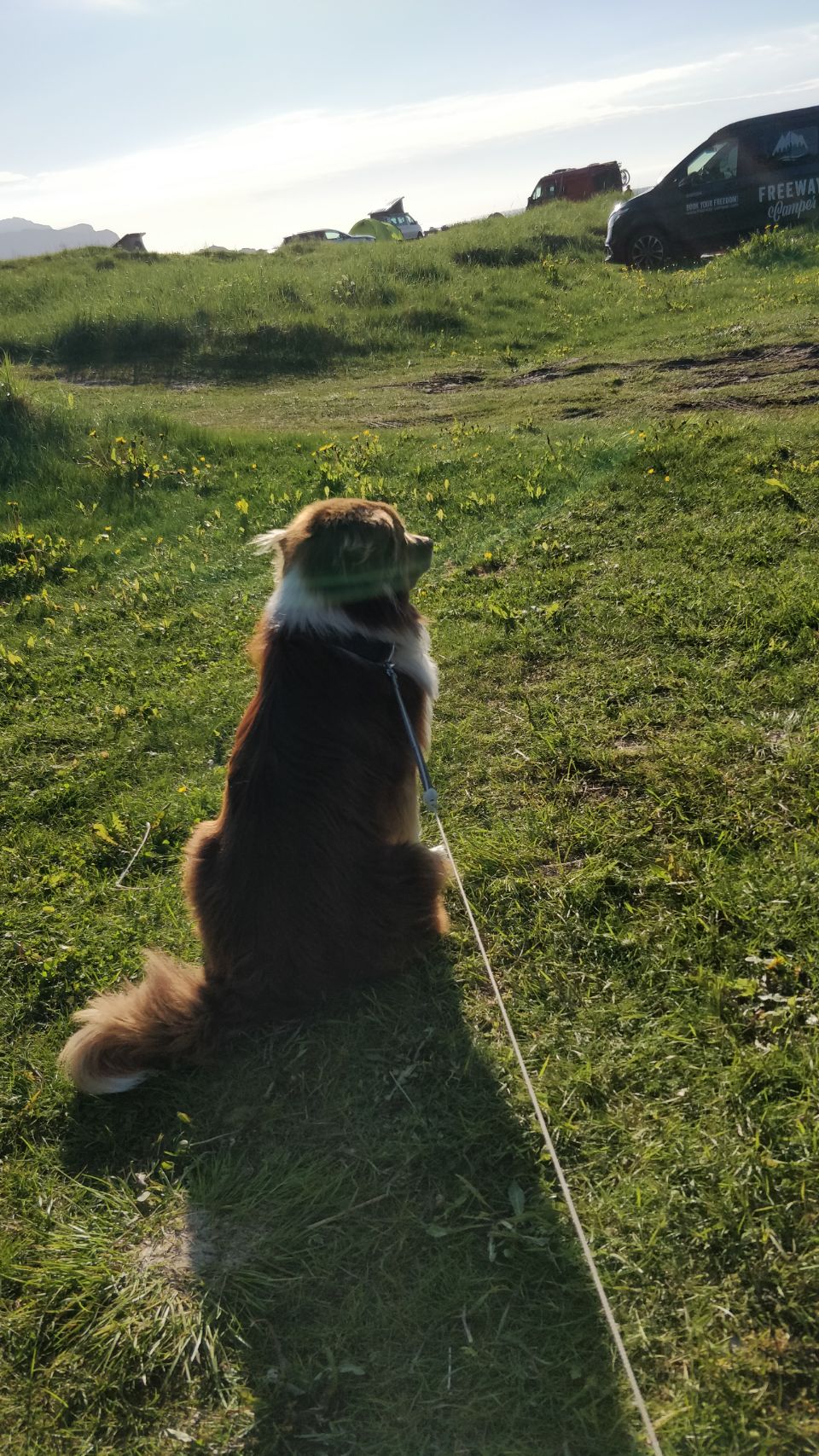 Dann ab mit dem müde gespielten Hund in den KRÜMEL und auf geht’s zum Lofoten Sightseeing 🏍️📷.