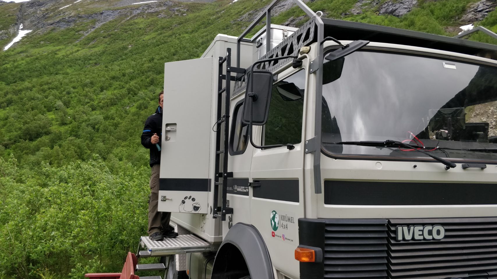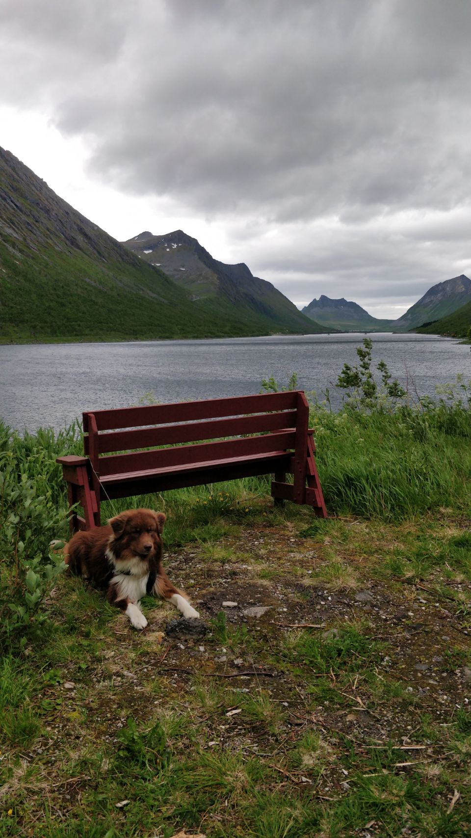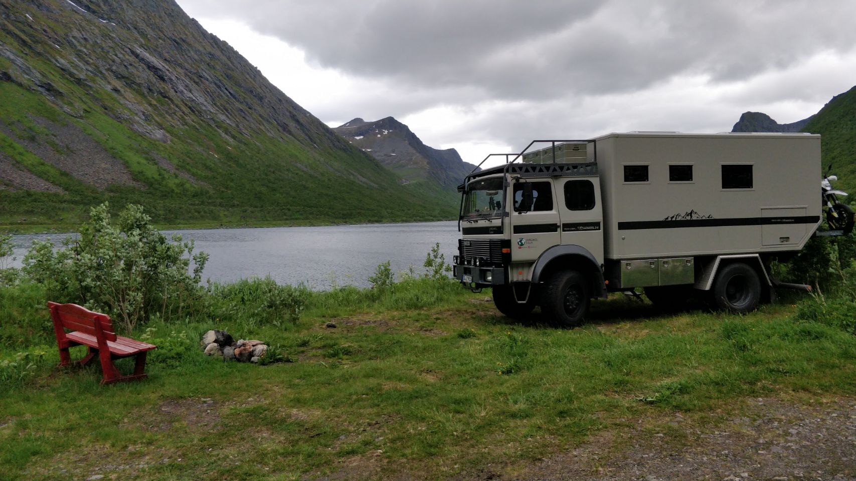 Wir fahren nicht mehr großartig weiter sondern nur bis sozusagen ans „Dead End“ des Gryllefjord auf der alten Straße. Dieser Abschnitt ist eine Sackgasse und wird nicht mehr viel genutzt, da eine es mittlerweile weiter vorn eine Brücke gibt. Der Stellplatz ist sehr schön, mit tollem Blick über den ganzen Fjord, es fehlen nur mal wieder so ca. 10 bis 15 Grad wärmer und etwas weniger Wind zum Glück. In der Nacht wächst der Wind übrigens zum ordentlichen Sturm an, so gelegentlich grübeln wir schon mal, ob der KRÜMEL nicht gleich auf der Seite liegt….