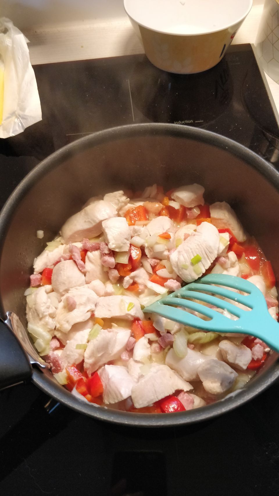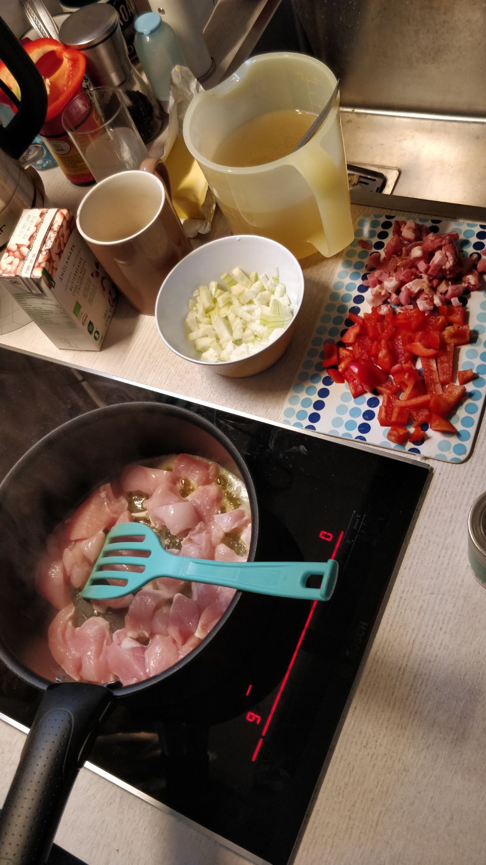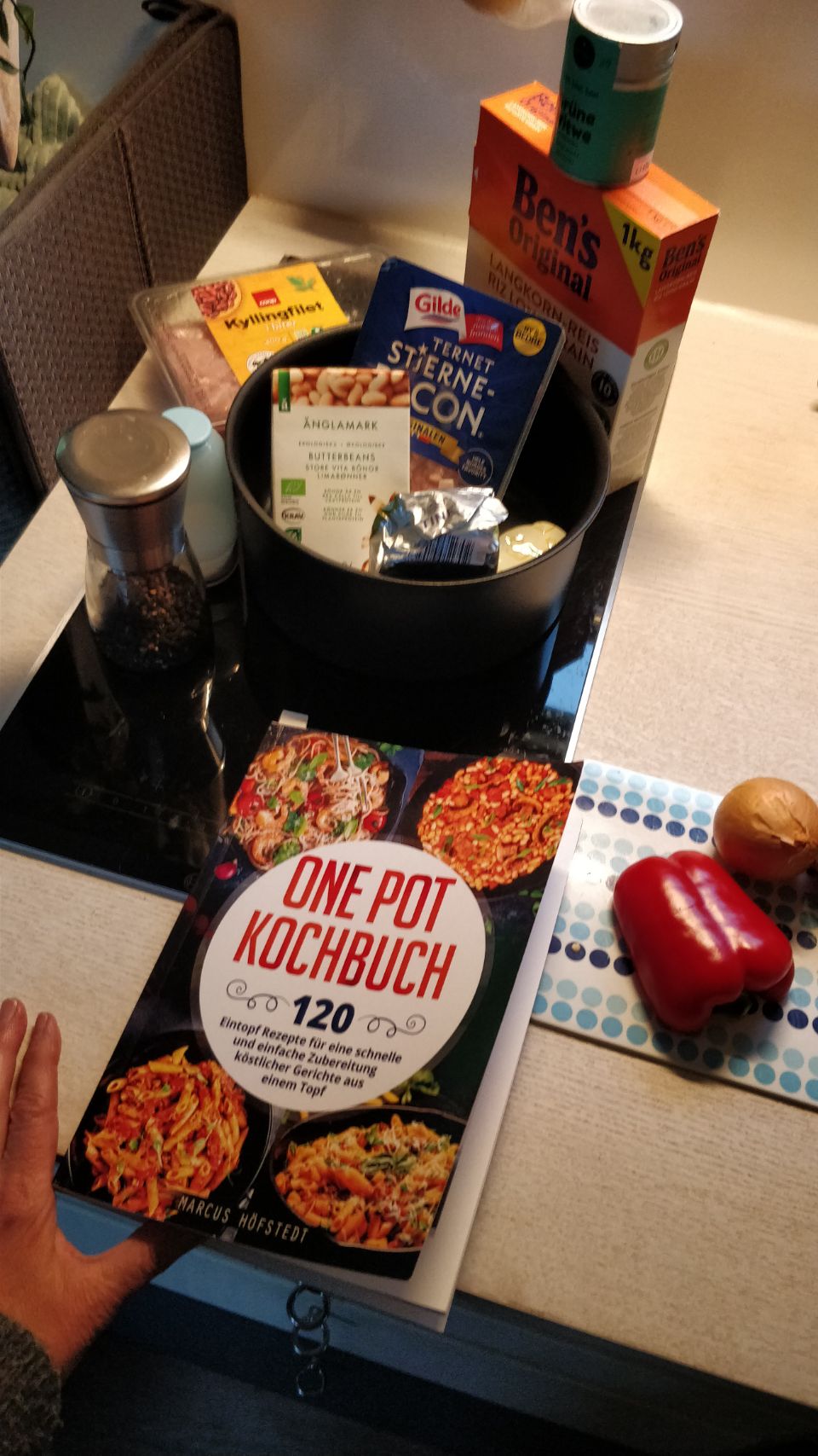 Meine lieben Kolleginnen Jutta, Gabi und Sabine haben mir nämlich ein schönes Kochbuch für die Reise geschenkt und daraus wird heute etwas gekocht: es gibt Hähncheneintopf mit Bohnen und Reis. Gesagt, gekocht, gegessen. Hat alles gut geklappt 🫢😜😌 und sowohl mir als auch dem Göttergatten super geschmeckt 🍲😋👍😃. Deshalb an dieser Stelle noch mal ein großes Dankeschön an meine lieben Fanta 4 Girls, ich hatte definitiv Spaß beim Kochen und es hat richtig lecker geschmeckt. Liebe Grüße nach Hause 😘🫶