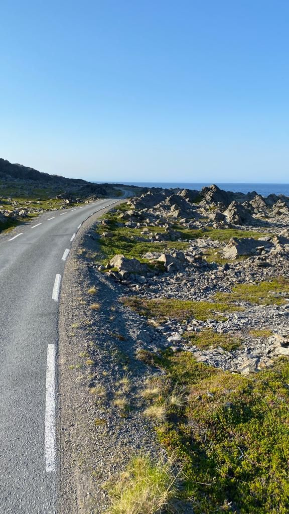 Gut, dass wir in Vadso noch eine Pause im Café machen – die letzten 30 km bis Hamningberg haben es in sich: sowohl fahrtechnisch (extrem eng und kurvig) aber vor allem „gucktechnisch“ der Hammer!!! Jede Kurve bringt eine neue krasse Aussicht bzw. zeigt immer wieder neue Facetten, man kann es gar nicht beschreiben: mal Highland, mal Mondlandschaft… (Mehr davon demnächst auf YouTube in unserem Video über Hamningberg… 🎬🎥🎞️)