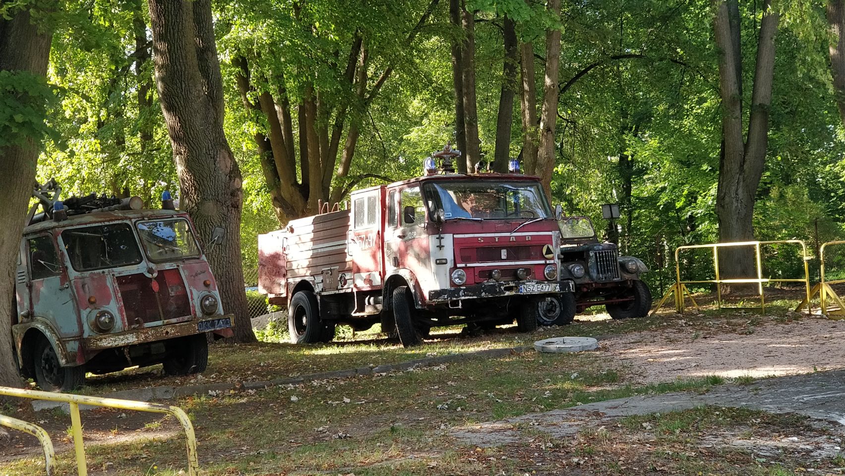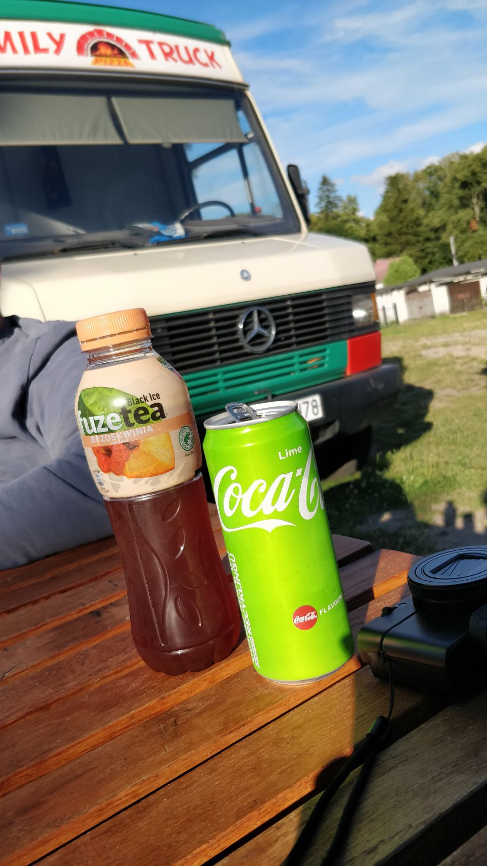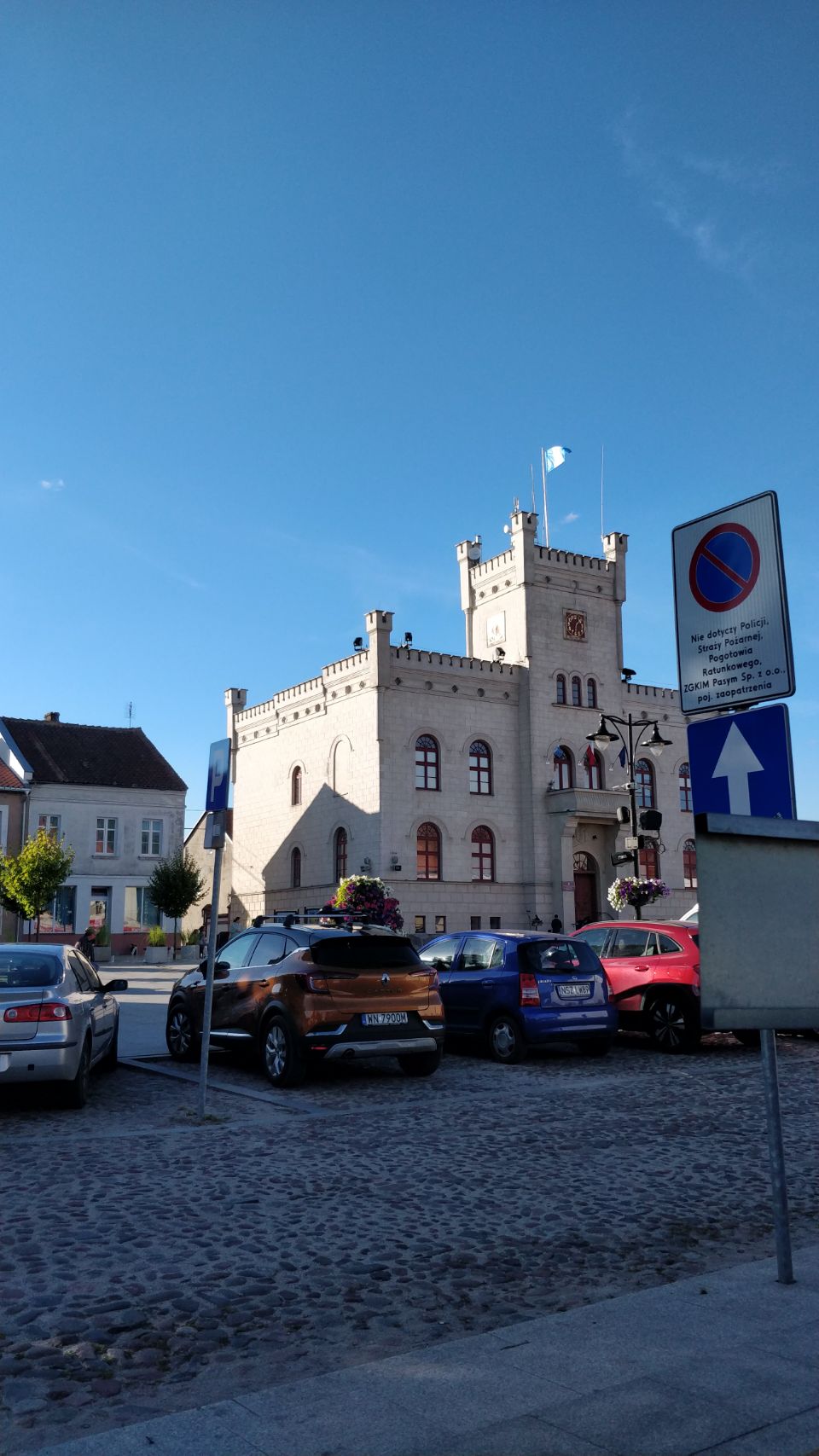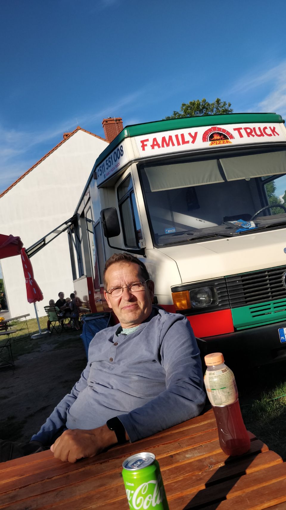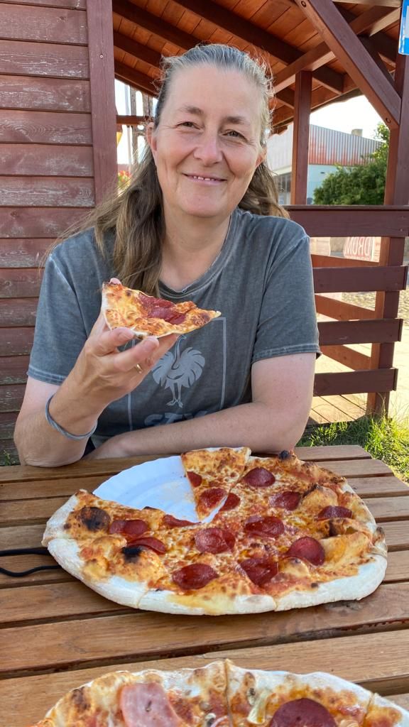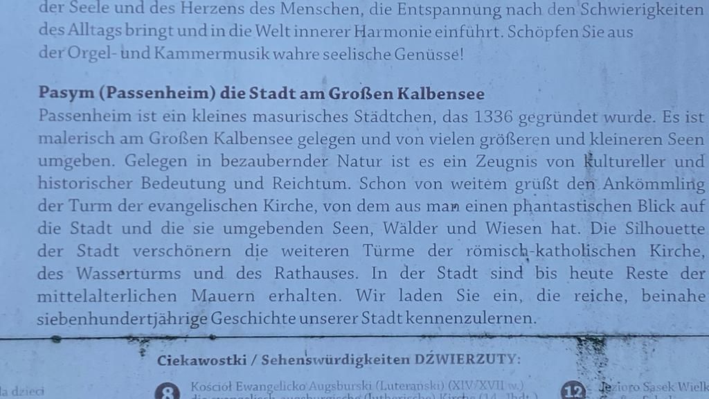 Am Nachmittag ist es wieder schön und wir machen uns auf in den Ort Pasym, ein ganz normales Dorf in den Masuren, klein, aber durchaus mit was zum Angucken: Die Bibliothek, das Rathaus mit Rathausplatz, diverse Kirchen, ein toller alter Wasserturm von 1911 mit einem sehr interessanten Fuhrpark (Thom hat sich den Jeep ausgesucht…), eine schöne Promenade am See – und ’ne leckere Pizza (zum Spottpreis) am Foodtruck gibt’s auch noch on top 😋.