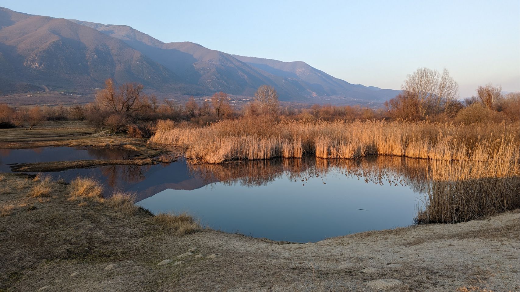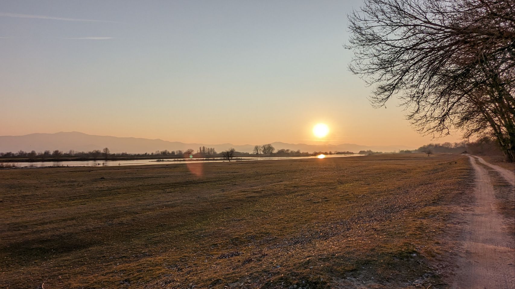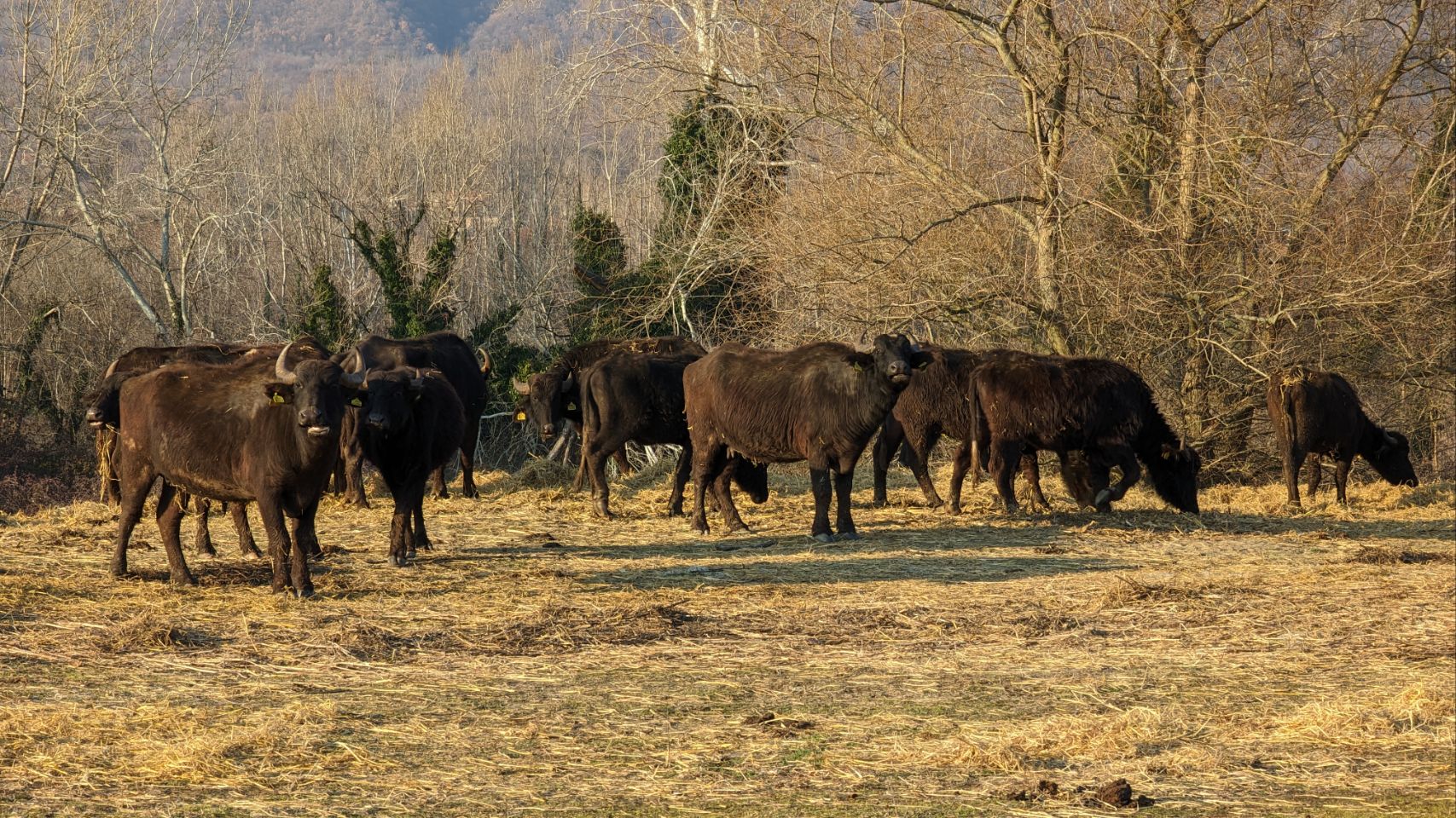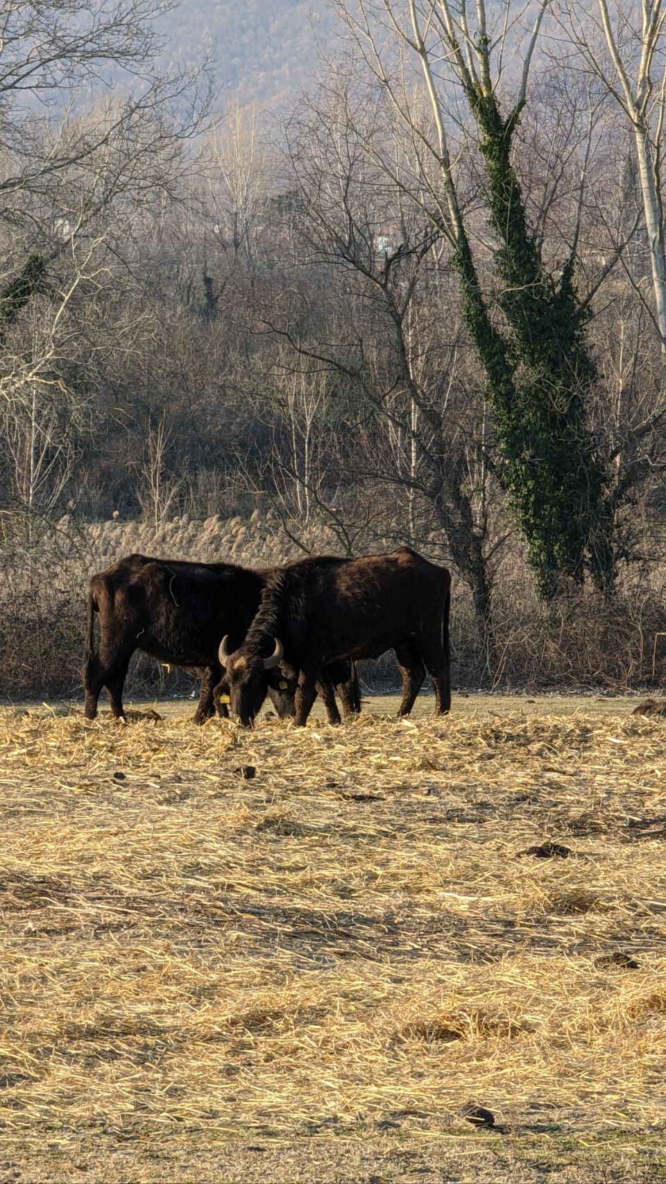 Es ist total warm und richtig frühlingshaft, also machen wir uns direkt auf den Weg in Richtung See und erkunden das (Feucht -)Gebiet. Hier leben grundsätzlich jede Menge Vögel, jetzt im Winter ist die Sichtungsquote 🦆🐦🦅 leider nicht ganz so reichlich. Dafür sehen wir aber jede Menge Wasserbüffel 🦬🦬…. und einen schönen Sonnenuntergang 🌅