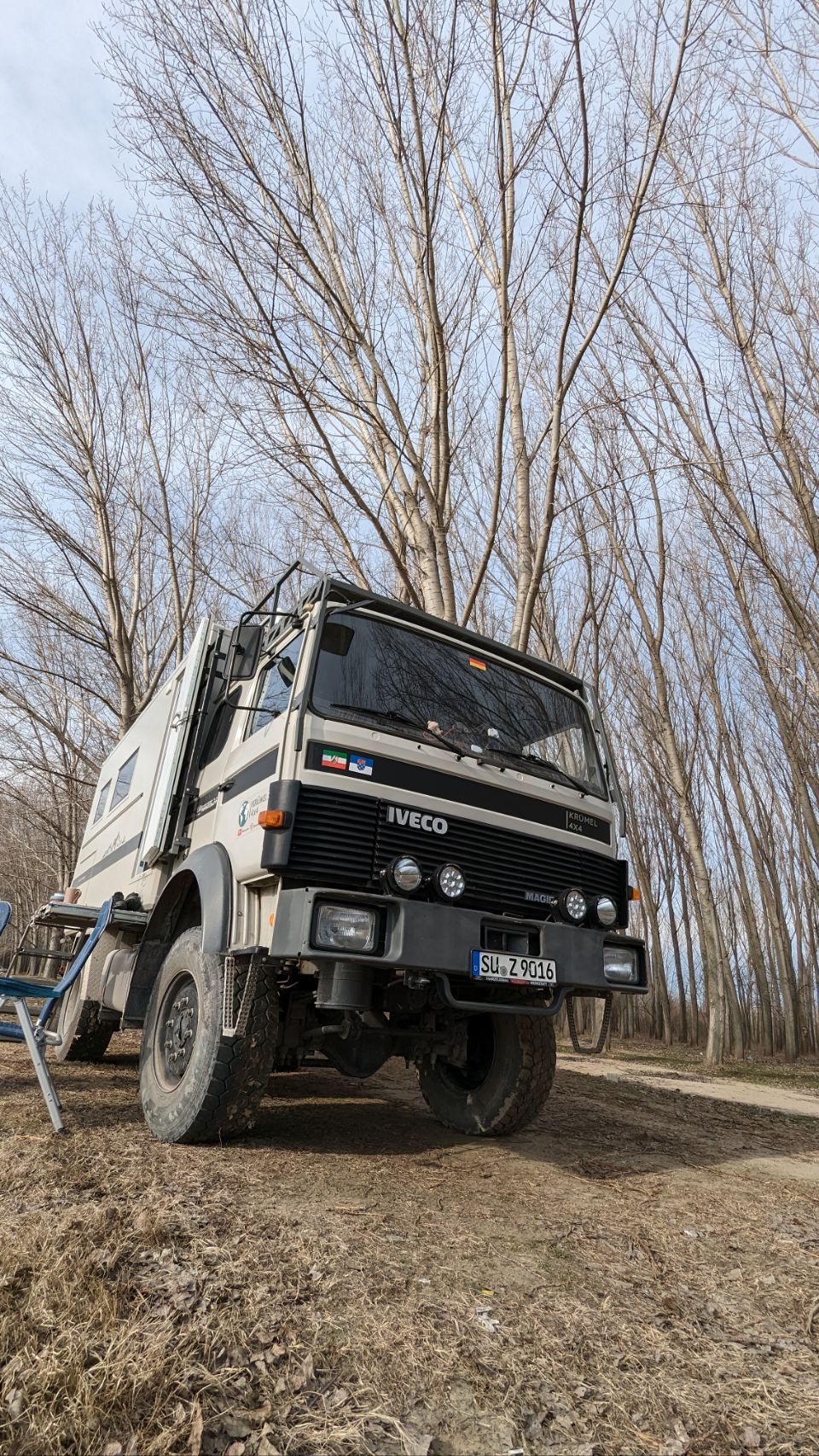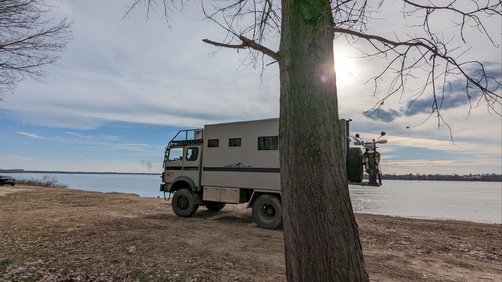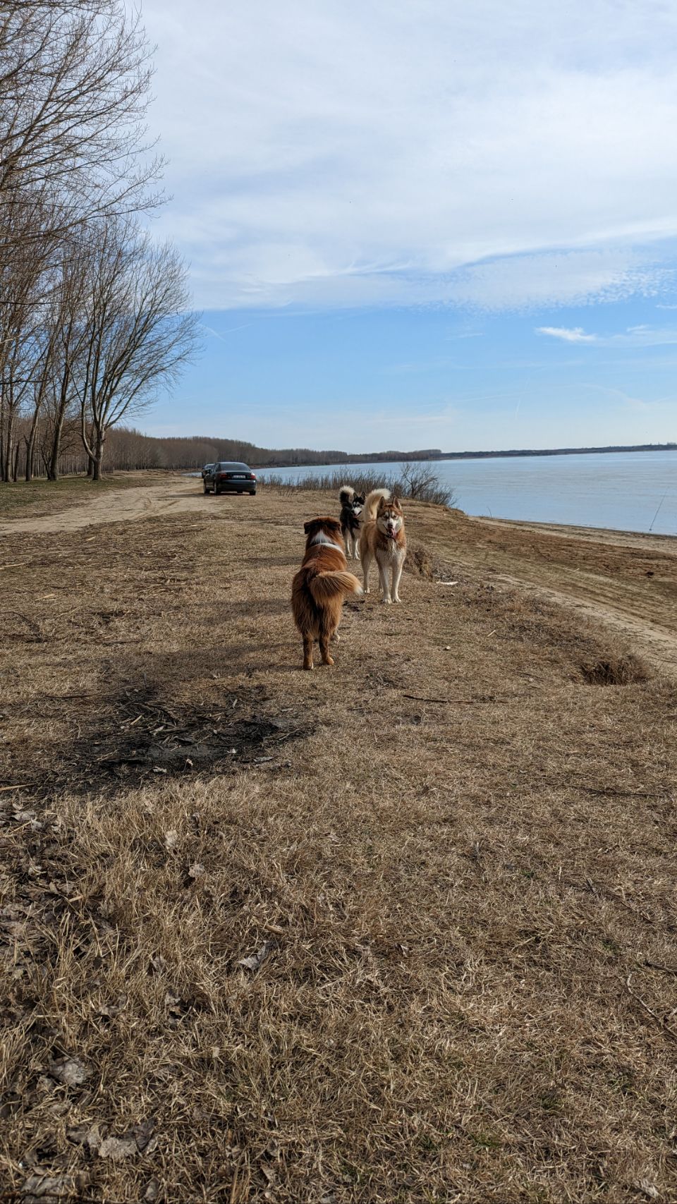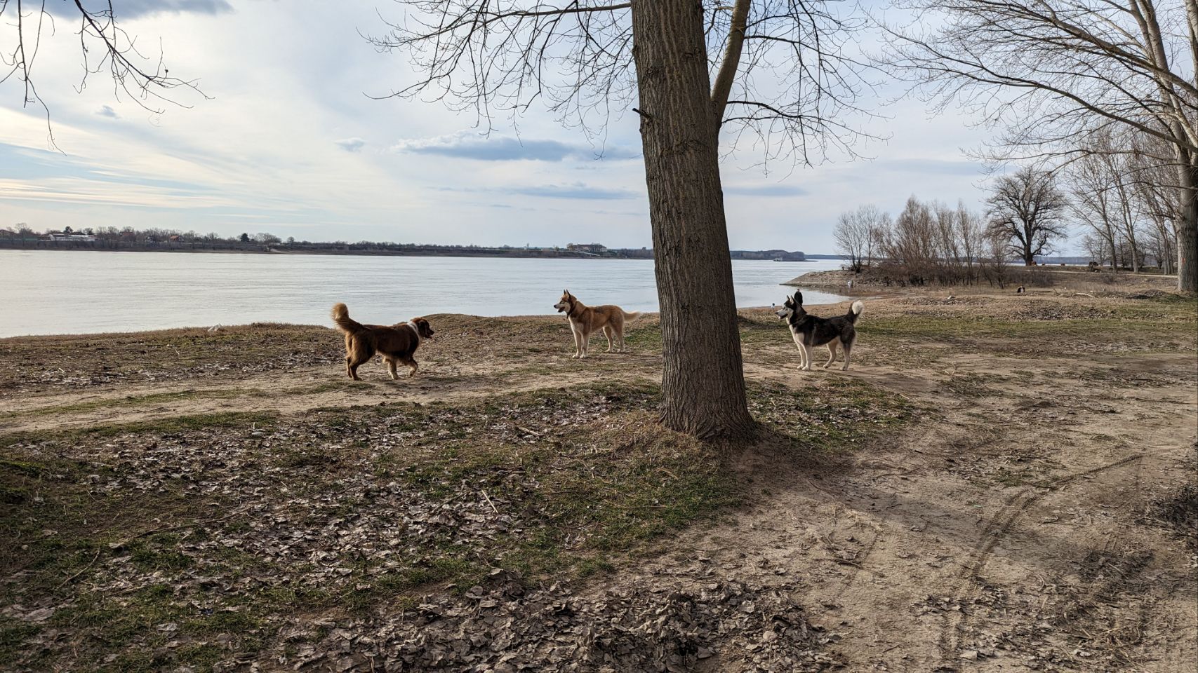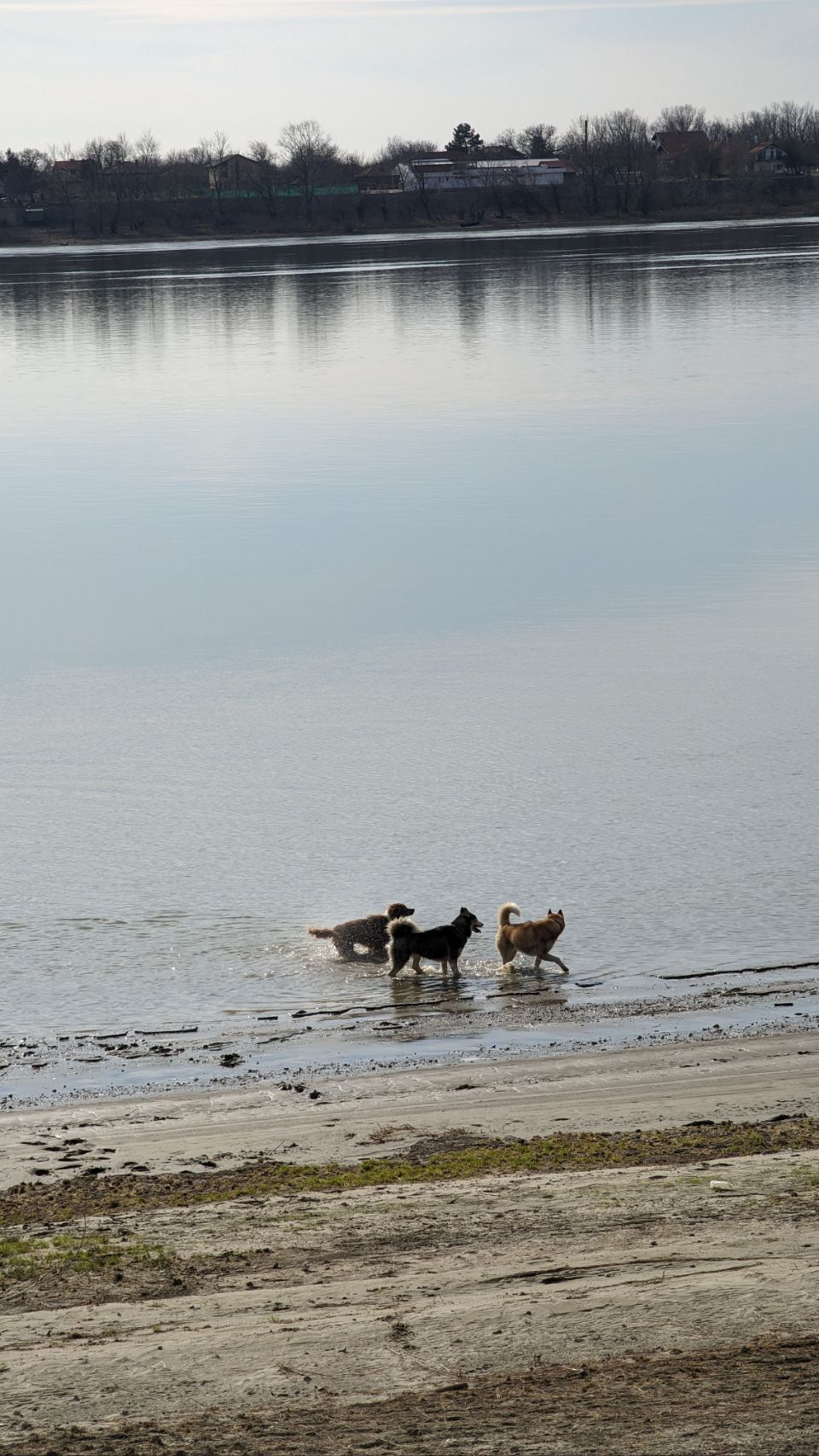Danach sind wir auch fast schon fertig mit Fahren für heute: wir haben für die nächsten 2 Tage einen schönen Platz quasi gegenüber von Vidin direkt am Ufer bzw am Stand der Donau gefunden, dort sind tagsüber ein paar Anglern und Einheimische, eine Gruppe hat 2 Huskies dabei, die den ganzen Nachmittag frei rumlaufen. Das darf Cuba natürlich auch und die 3 haben ihren Spaß miteinander!