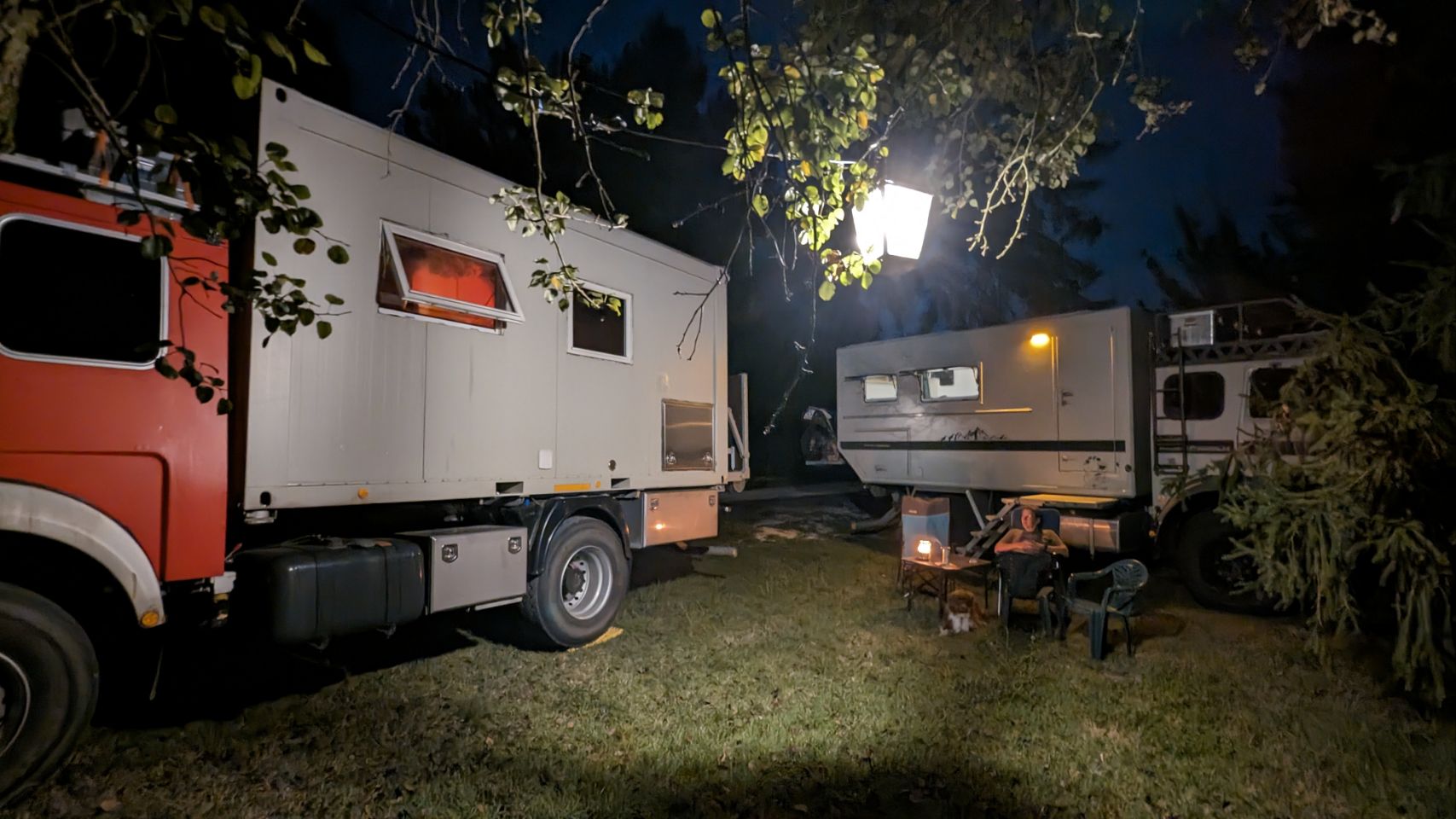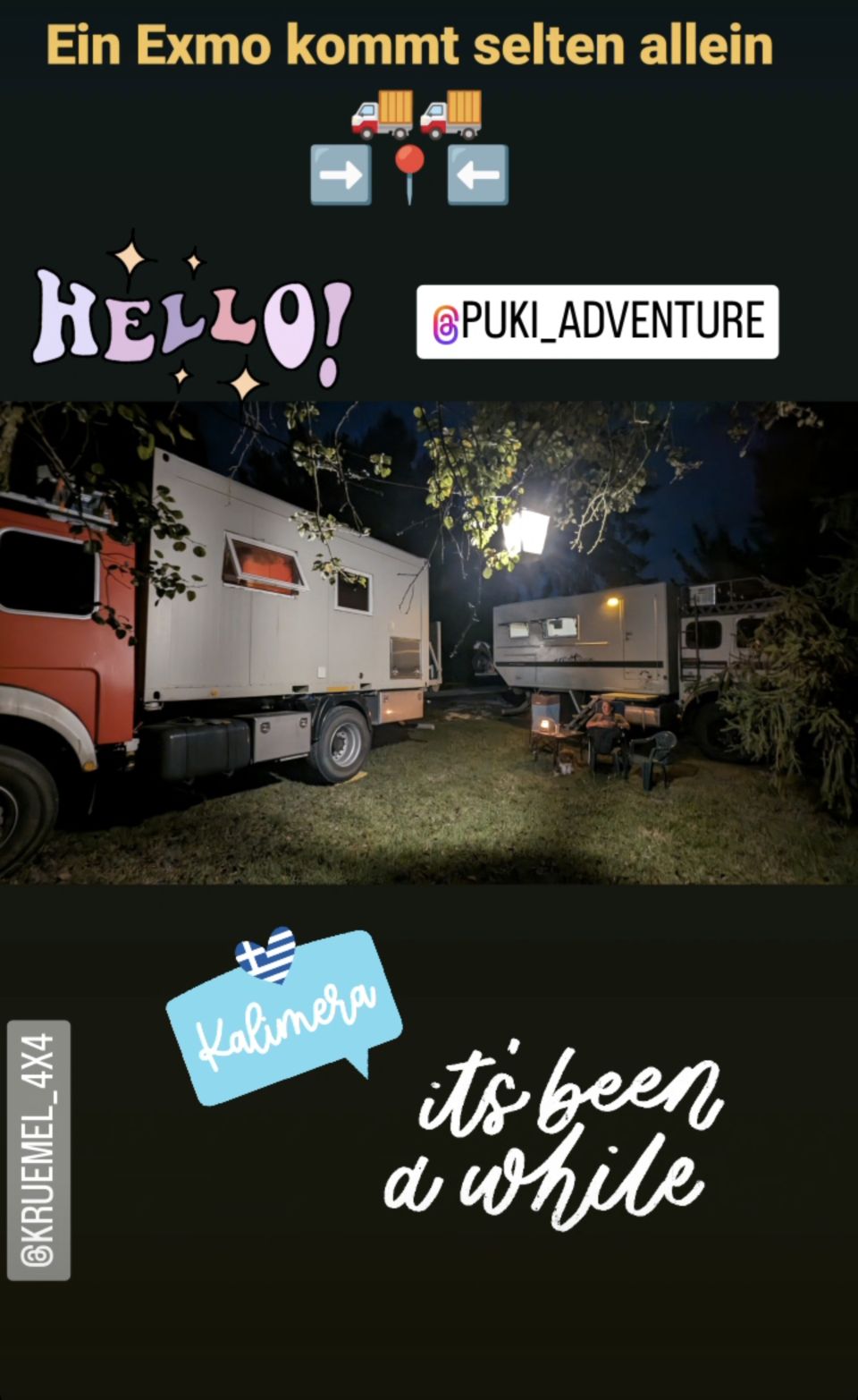 Dafür hat es in der zweiten Tageshälfte ein umso schöneres Highlight: ganz spontan gibt es ein Wiedersehen mit PUKY ADVENTURE – Alex und Ursula (damals noch nur mit der kleinen Ronja, jetzt zu viert mit Luana) haben wir in Griechenland auf der Peloponnes kennengelernt und damals etliche schöne Tage am Strand zusammen verbracht. Sie sind wieder auf dem Weg nach Griechenland und ganz spontan hat es mit einem Treffen auf dem Hof von Claudio gepasst. Der war schon total begeistert, als wir gestern mit unserem Krümel aufgetaucht sind, jetzt mit 2 x 🚚🚚 ist natürlich noch besser 😀.