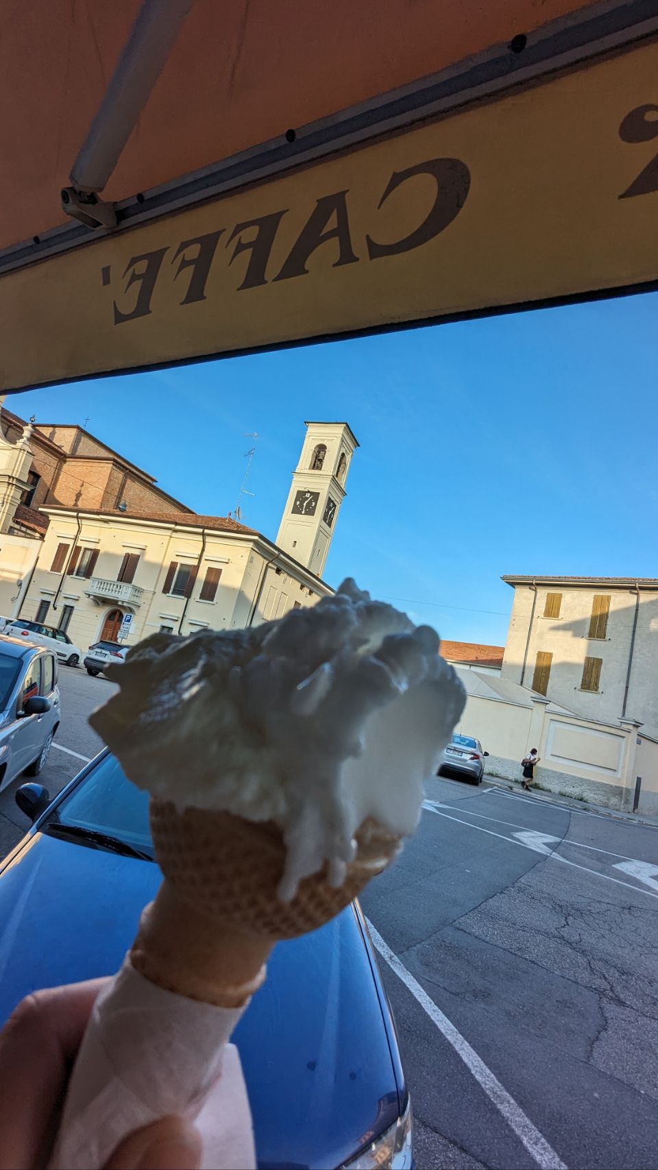 Zwischendurch waren wir noch mit Cuba eine Runde unterwegs und sind an der Secchia (Nebenfluss des Po) entlang in das kleine Städtchen Quistello spaziert. Es ist ganz schön heiß hier, aber glücklicherweise haben wir eine kleine Abkühlung 🍦 gefunden.