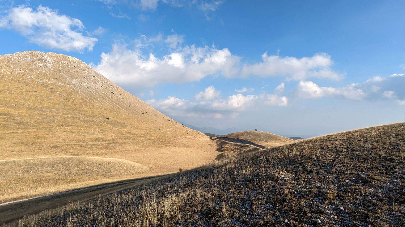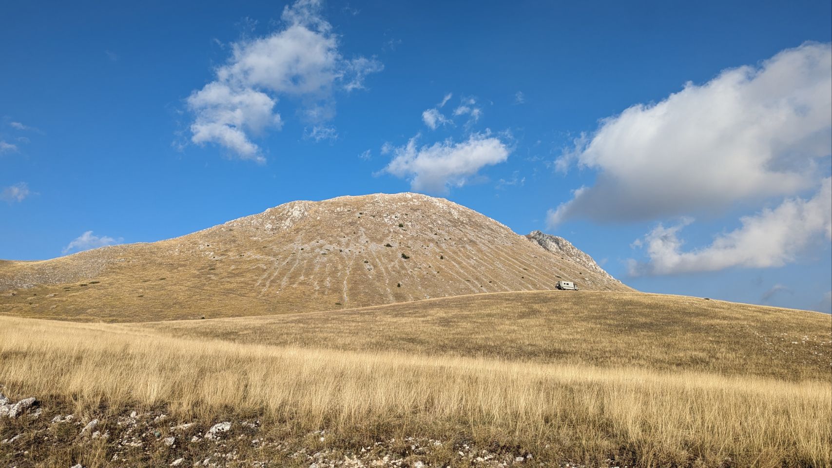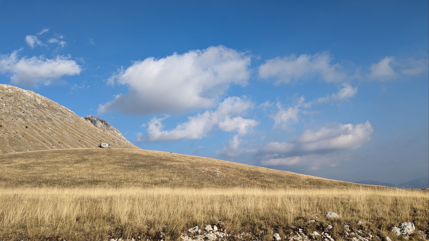 Weil Wochenende ist, kommen zwar ab und zu ein paar Mountainbiker und Wanderer, eine Jeep Safari und auch 2 Motorradfahrer vorbei, nicht zu vergessen die Eselwanderung 🫏, aber auf unseren Hügel verirrt sich kein Mensch.