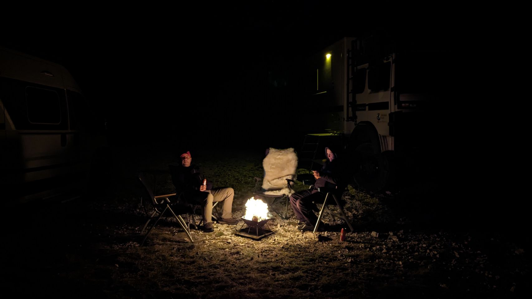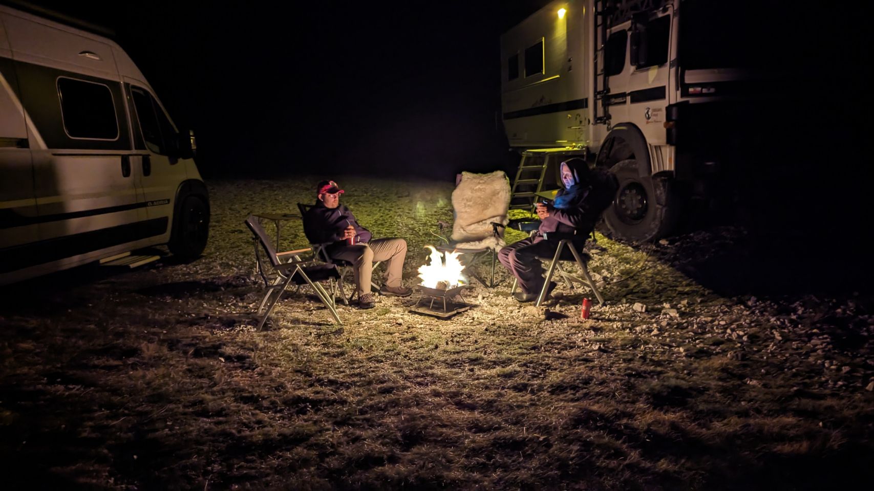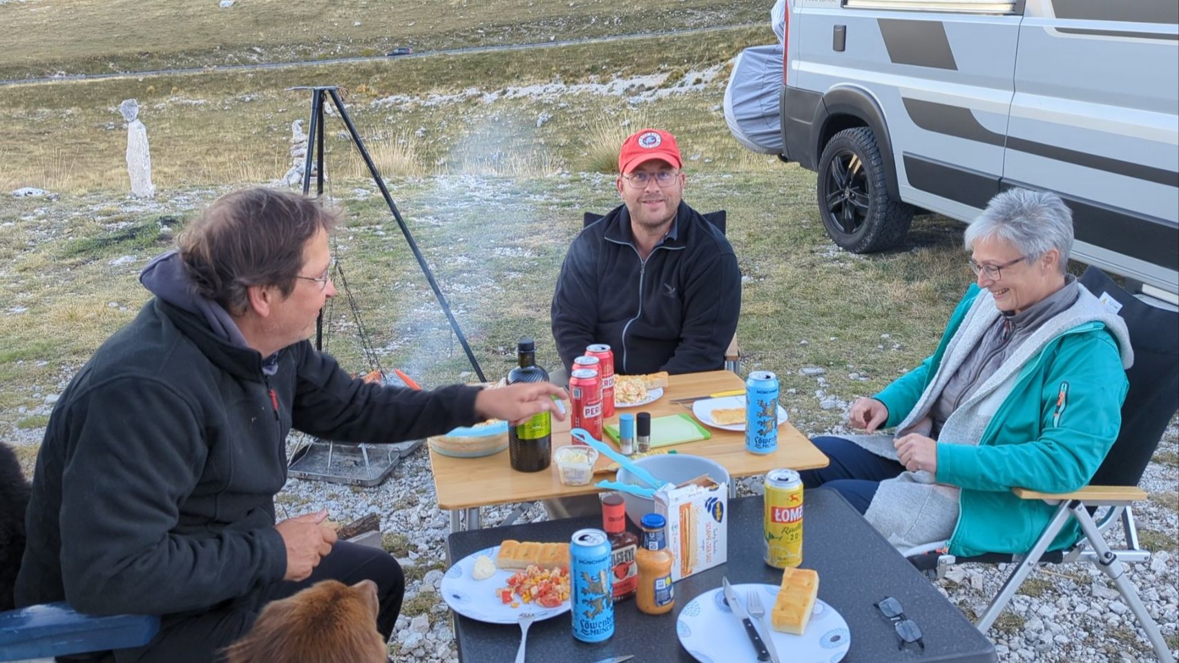 Es wird ein super netter Abend, wir grillen und machen unser erstes Lagerfeuer auf dieser Reise 🪵🔥!