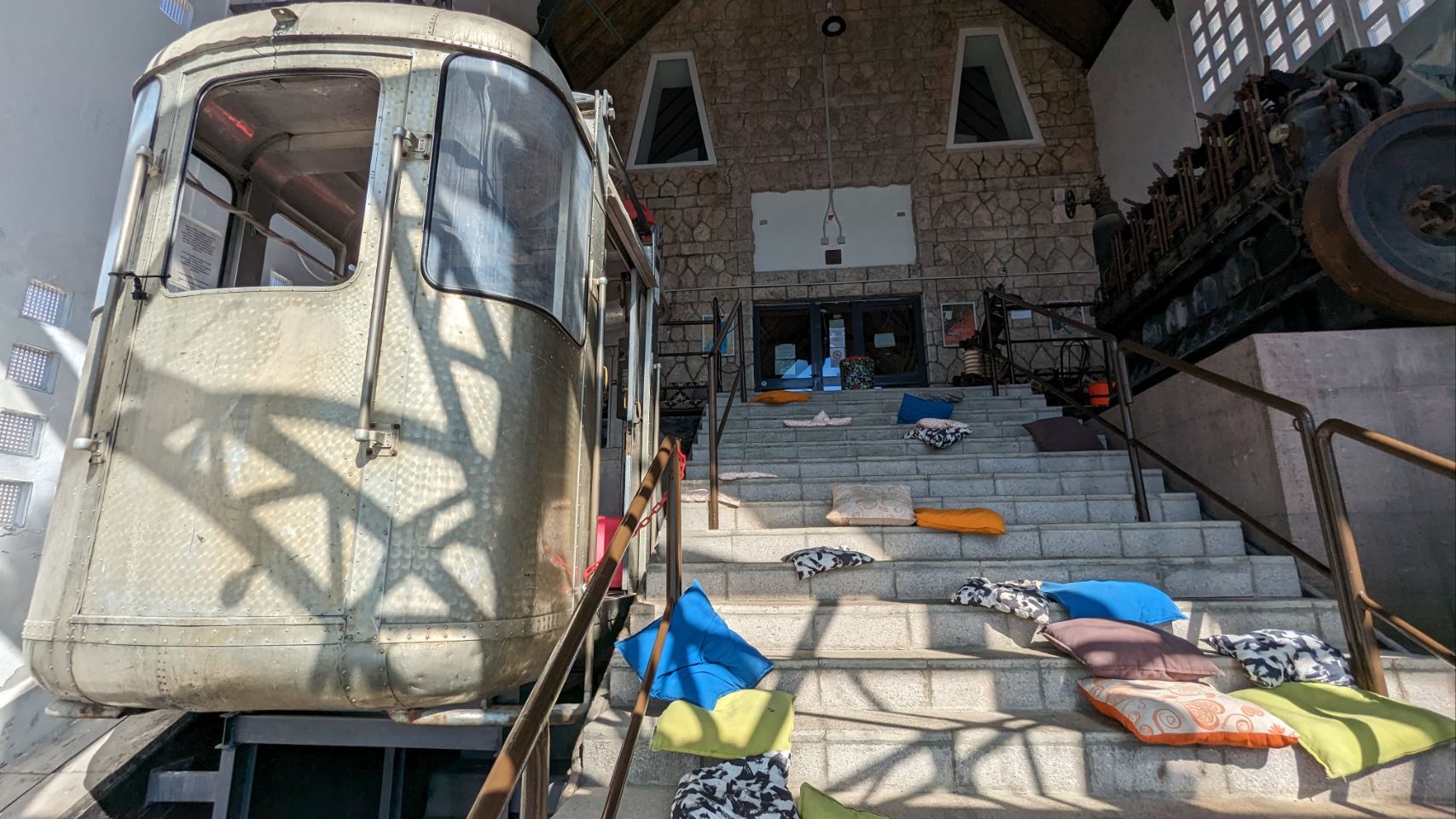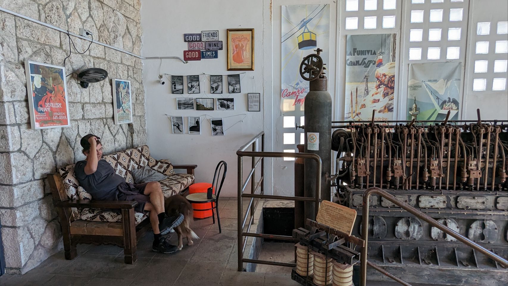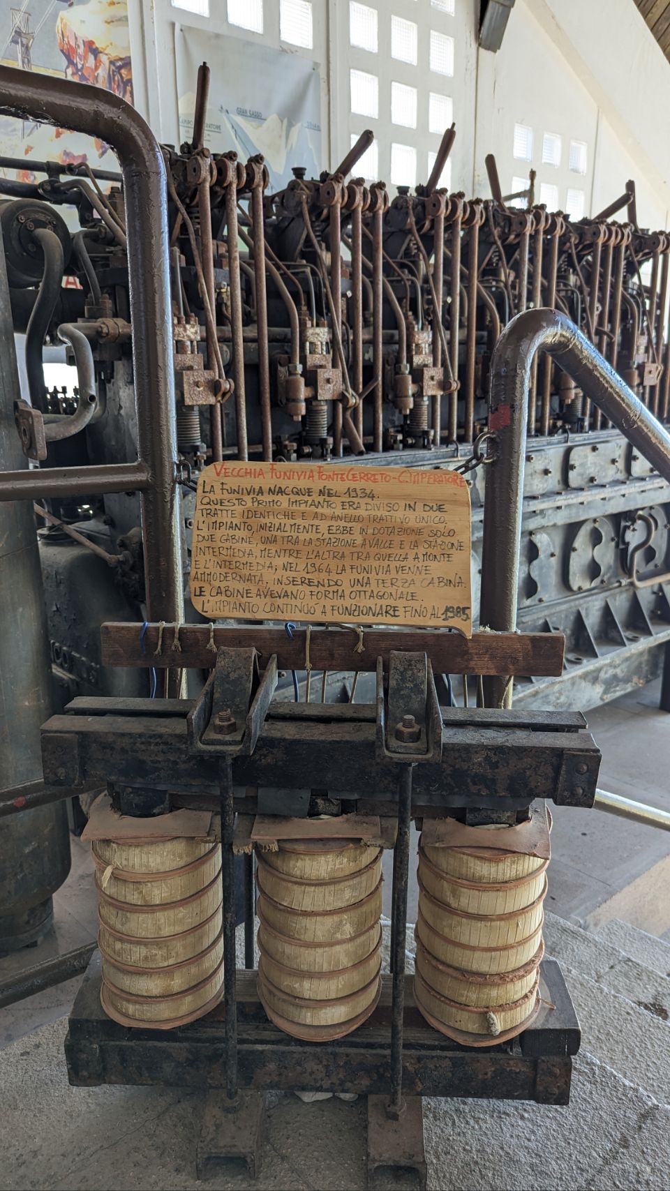 Dort trinken wir den bisher teuersten Cappuccino (2 Euro) in Italien und es beinhaltet ein Minimuseum der alten Seilbahn (1934 bis 1985), was umsonst und richtig cool ist 🚡.