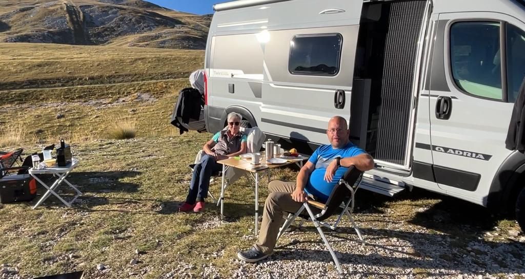 Nachdem wir uns eine Weile rumgetrieben haben, fahren wir wieder ein paar Kilometer bergab zu dem Platz, den wir uns für die Übernachtung und das Treffen mit Heike und Armin ausgesucht haben. Die beiden kennen uns durch unsere YouTube-Videos und haben uns angeschrieben, weil sie auch hier in der Ecke unterwegs sind, ob wir uns mal treffen können.