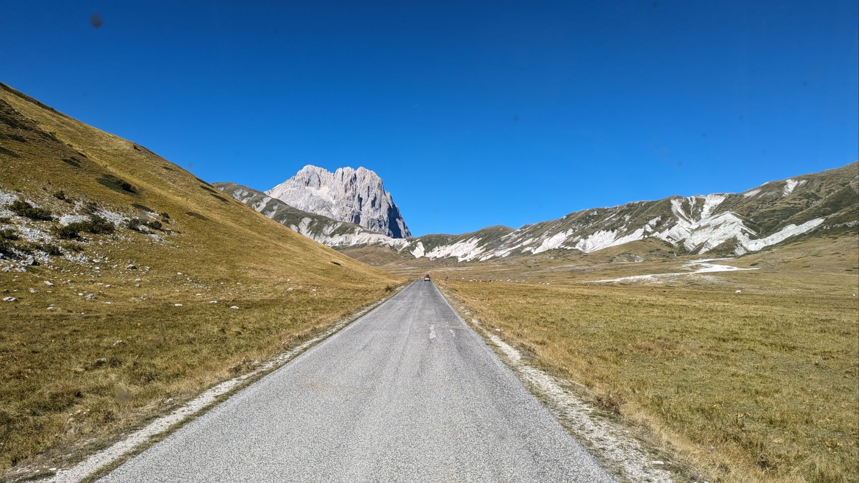 Weitere 5 km geht es also über den Offroad-Track wieder raus aus „Little Tibet“ – nächster Halt ist das „Hotel Campo Imperatore“. Hier wurde 1943 Mussolini interniert, bis er von seinem Kumpel Hitler befreit und nach Deutschland ausgeflogen wurde („Unternehmen Eiche“ ).