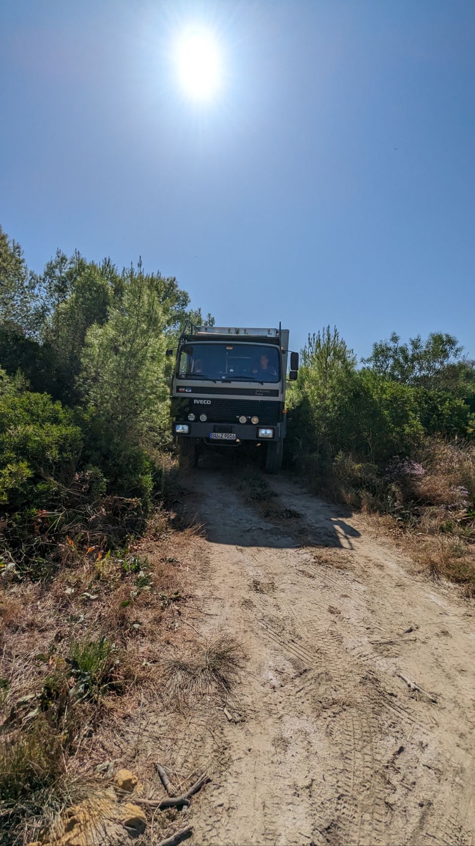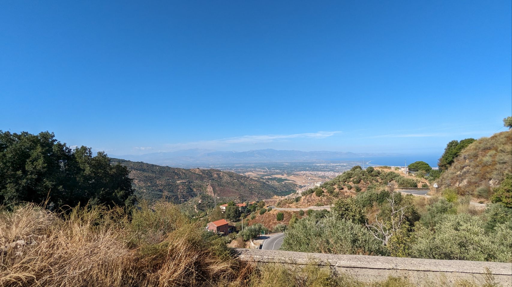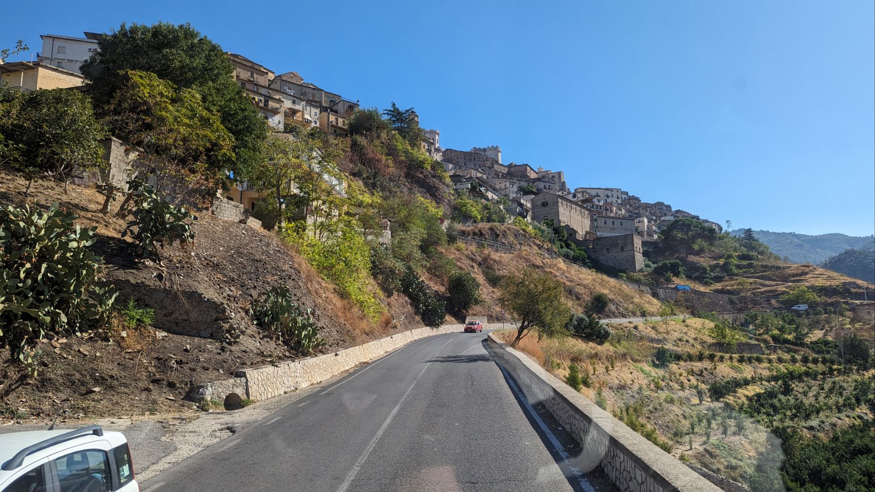 Von der Strecke gibt es heute nicht so viele Bilder, vor allem nicht von dem Teil, wo es sich mal richtig gelohnt hätte: irgendwann ging es auf einmal durch ein Bergdorf, dagegen waren die meisten Orte in Griechenland harmlos. Es wurde immer enger, überall Autos, alles zugeparkt wie hierzulande so üblich und dann stehen wir mitten im Dorf an einer Baustelle vor dem Schild „Begrenzung der Durchfahrtsbreite auf 2,30 m“, zudem geht’s bergauf und es ist eine Einbahnstraße 🙈🙉🙊 ‼️