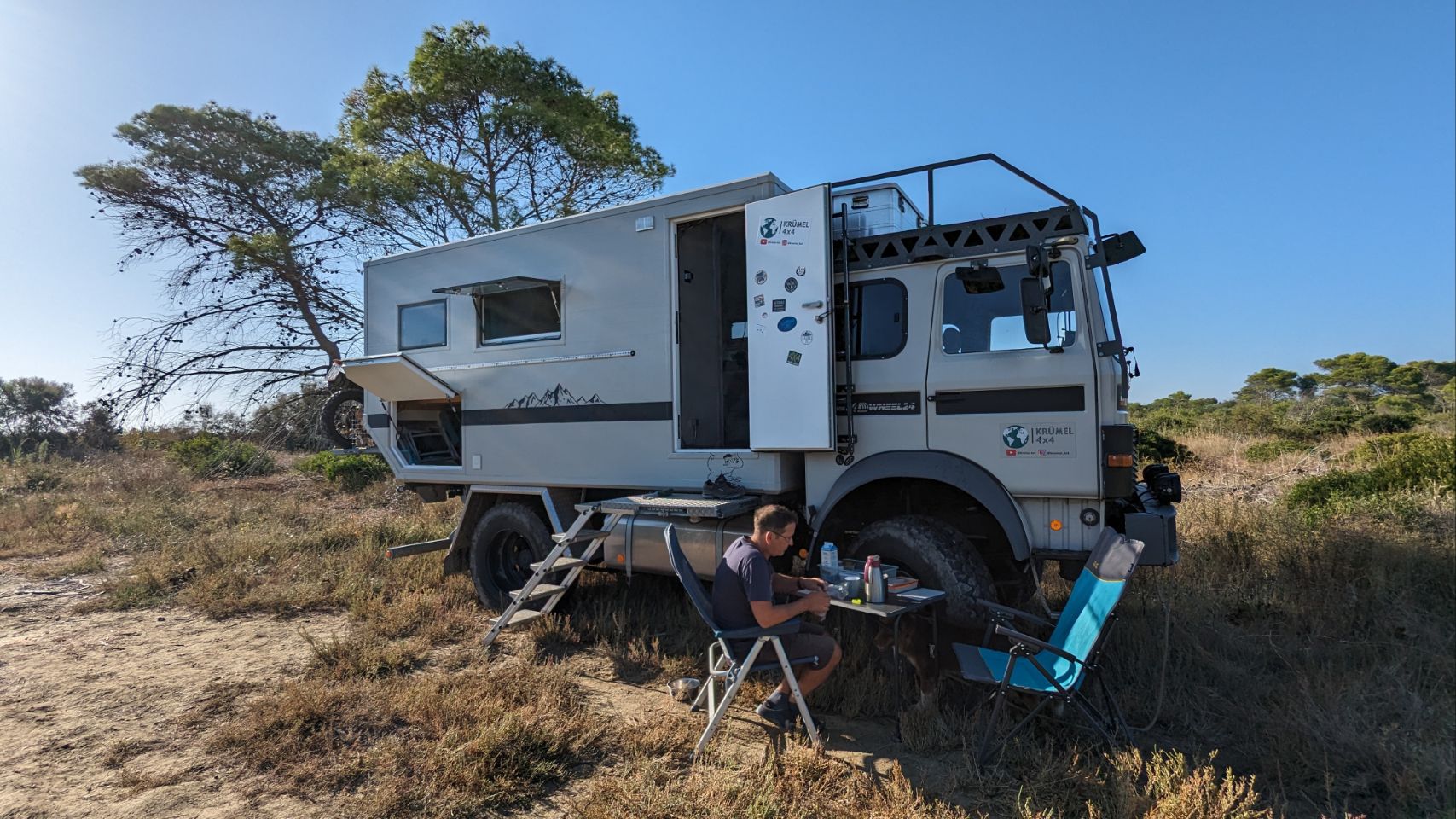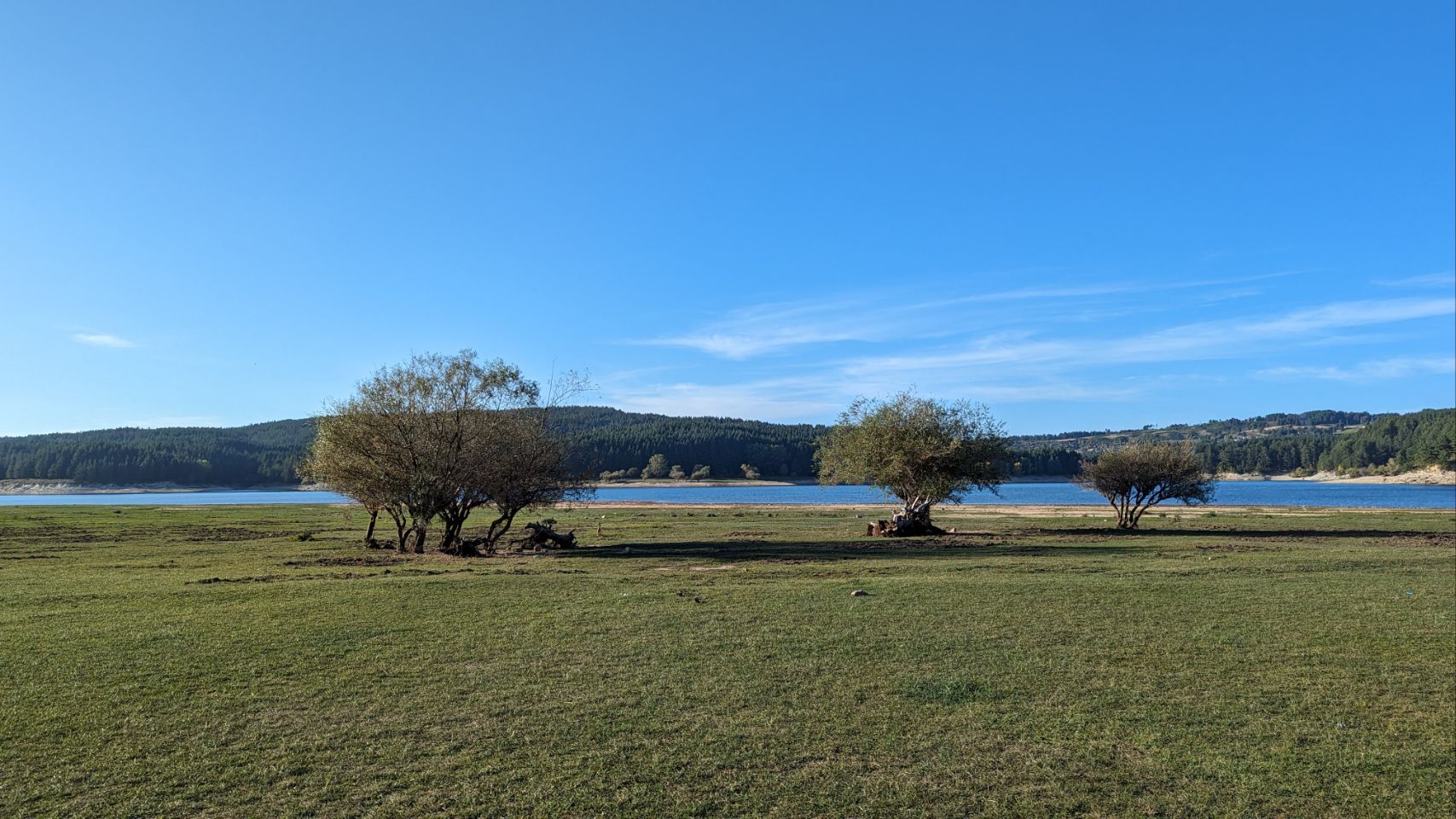 Wir (ICH!!!) sind froh dann unbeschadet am Lago Cecita anzukommen und wir suchen uns auf dem „Parkplatz“ – eine riesige Wiese mit Bäumen – einen Platz am weitesten vom Besucherzentrum entfernten Ende. Es ist aber eh nicht viel los und wir stehen quasi fast mit Blick auf den See. Zwischen uns und dem See ist allerdings ein Zaun, da es dort freilaufende Kühe gibt. Wir machen noch einen Spaziergang zum Wasser, gucken uns das Zentrum an und backen zum Abendessen unser erstes Brot auf dieser Reise.