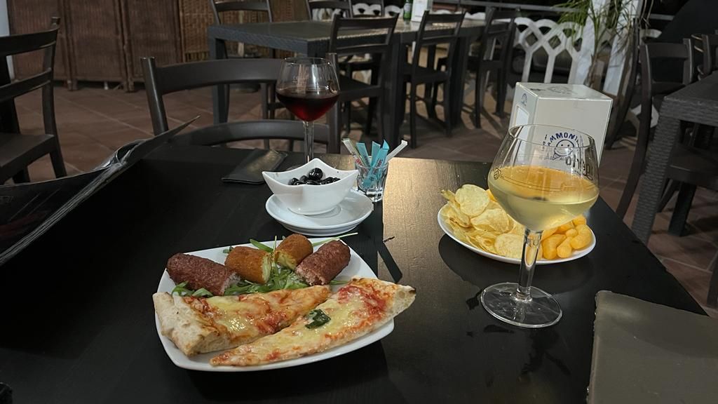 Leider gibt es heute keine Pizza, der Pizzabäcker ist nicht da 🙁. Was zum Futtern gibt es trotzdem und eigentlich reichen die Tapas zum Vino schon fast zum Sattessen und dann bezahlen wir für alles nur 10,50 Euro… was offensichtlich ein Abrechnungsfehler ist, aber trotzdem wir es reklamieren, will man nicht mehr Kohle haben 🤷🏼♀️…