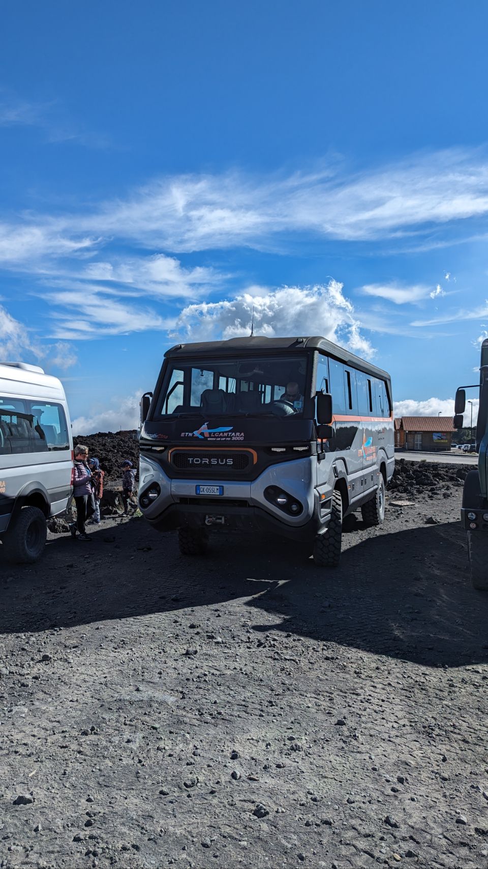 „Abfahrt von Piano Provenzana um 10.30 Uhr mit Geländefahrzeugen entlang der Panoramastraße, die zwischen antiken Kratern zur Nordseite des Ätna führt und entlang neuer Lavaströme, bis wir das Vulkanologische Observatorium auf einer Höhe von 2800 m erreichen. Dort angekommen werden Sie von unseren Führern begrüßt und bis zum Aussichtspunkt Pizzi Deneri begleitet, um das großartige Panorama von den Gipfelkratern des Ätna bis zum Ionischen Meer mit Blick auf das Valle del Bove und das Valle del Leone zu bewundern. Wenn Sie dann zu den Fahrzeugen zurückgekehrt sind, wird der nächste Halt bei den Kratern des Ausbruchs von 2002 sein, wo Sie eine kleine, aber faszinierende Wanderung entlang der Kraterränder des Ausbruchs unternehmen werden, der Piano Provenzana zerstörte. Anschließend erfolgt die Rückfahrt mit Geländefahrzeugen nach Piano Provenzana.“