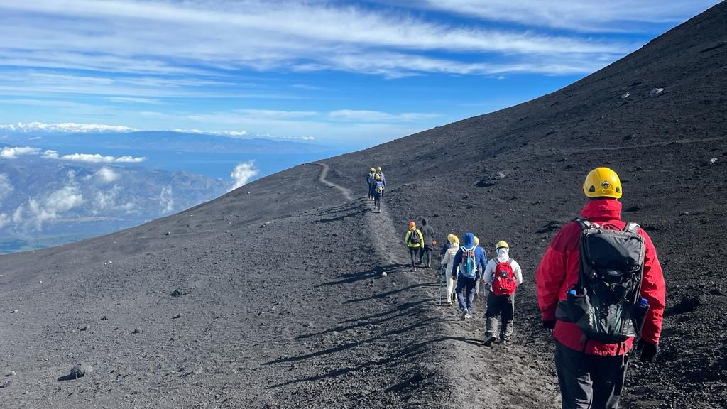 „Abfahrt ab Piano Provenzana um 8 Uhr. An Bord spezieller 4×4-Fahrzeuge geht es über die Panoramastraße der Nordseite des Ätna durch alte Krater und neue Lavaströme bis auf eine Höhe von 2960 Metern. Anschließend 3 km Aufstieg zu Fuß auf einem Pfad aus Vulkanschlacke. Der Höhenunterschied, der bergauf zurückgelegt werden muss, beträgt 330 Meter, bis zum echten Zentralkrater des Ätna auf einer Höhe von 3300 Metern. Oben angekommen halten wir an, um die Größe und Einzigartigkeit der vulkanischen Umgebung, die damit verbundenen Prozesse und das Spektakel der Aussicht vom Dach Siziliens zu bewundern (die Sicht kann je nach Wetter oder Vulkanbedingungen variieren). Der 2 km lange Abstieg erfolgt auf der gleichen Route wie bergauf, nur das letzte Stück verläuft in kleinen Kanälen aus weicher und bröckeliger Vulkanschlacke, auf denen man problemlos und ohne größere Probleme laufen kann. Von 2825 Metern aus besteigen Sie die 4×4-Fahrzeuge für die Rückkehr nach Piano Provenzana.“