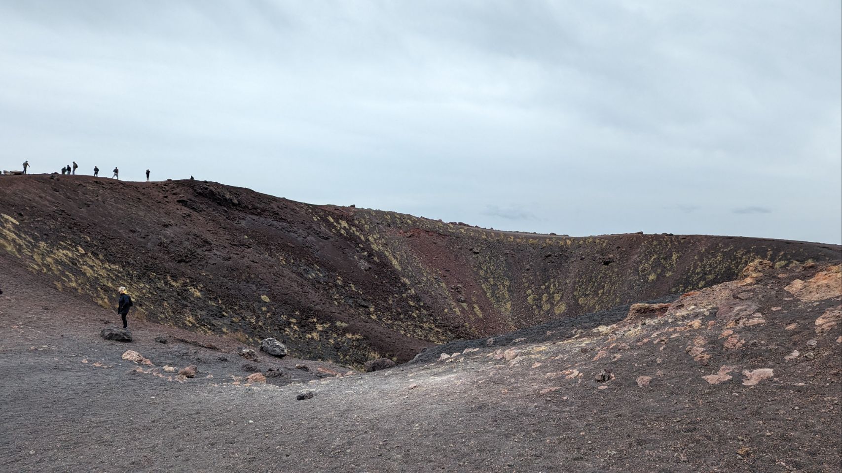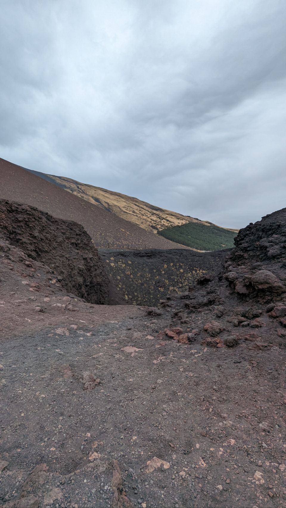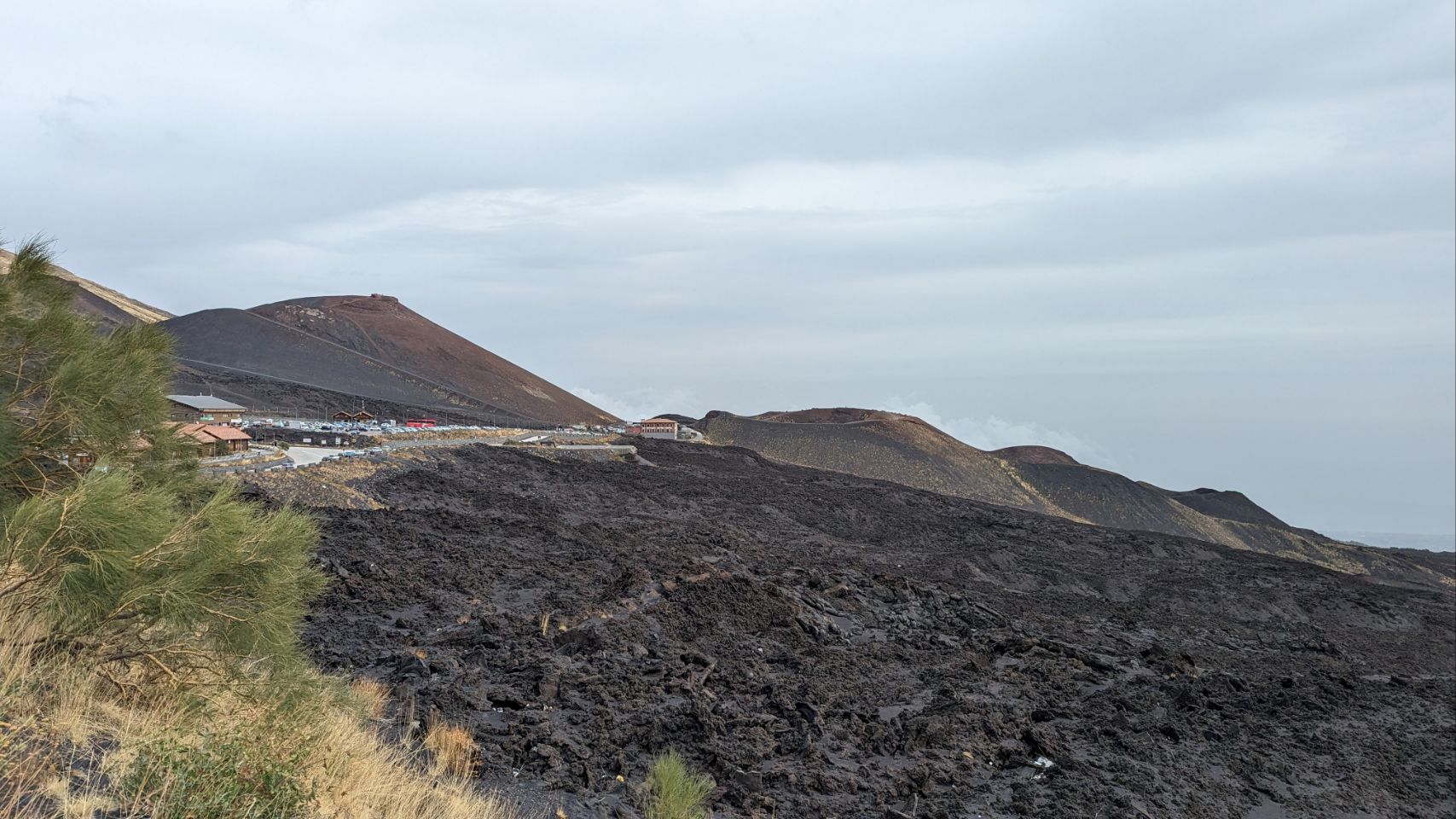 Also fahren wir nur kurz zum Refugio Sapienza Etna Süd, dem Hauptparkplatz der Südseite, und gucken uns dort noch den Crateri Silvestri an. Der Crateri Silvestri ist eine von 5 Vulkanöffnungen, die beim Ausbruch 1892 entstanden sind. Der damalige Ausbruch des Etna dauerte 6 Monate und bildete diese Kraterformation