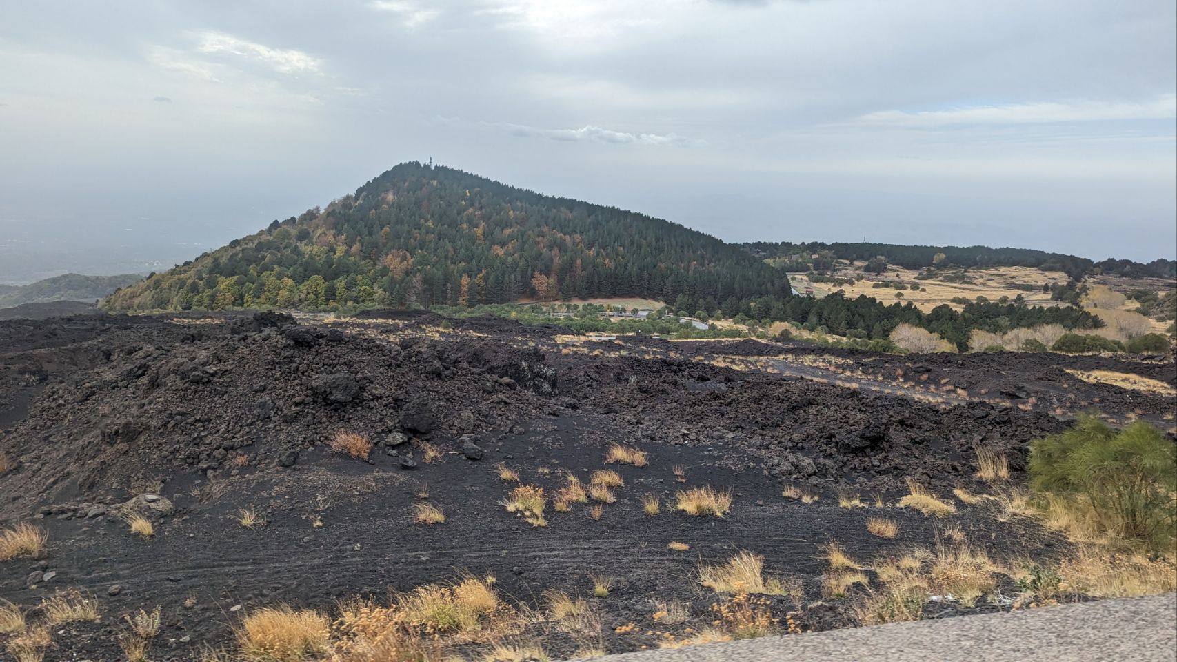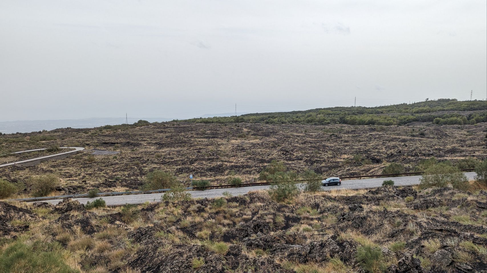 Heute wollen wir (eigentlich) von der Nordseite auf die Südseite vom Etna, dort auf einem Offroad-Platz übernachten und die Südseite noch ein bisschen erkunden. Leider hat der Wind enorm zugenommen (sieht man vielleicht an Cuba… 🌬️🐕…).