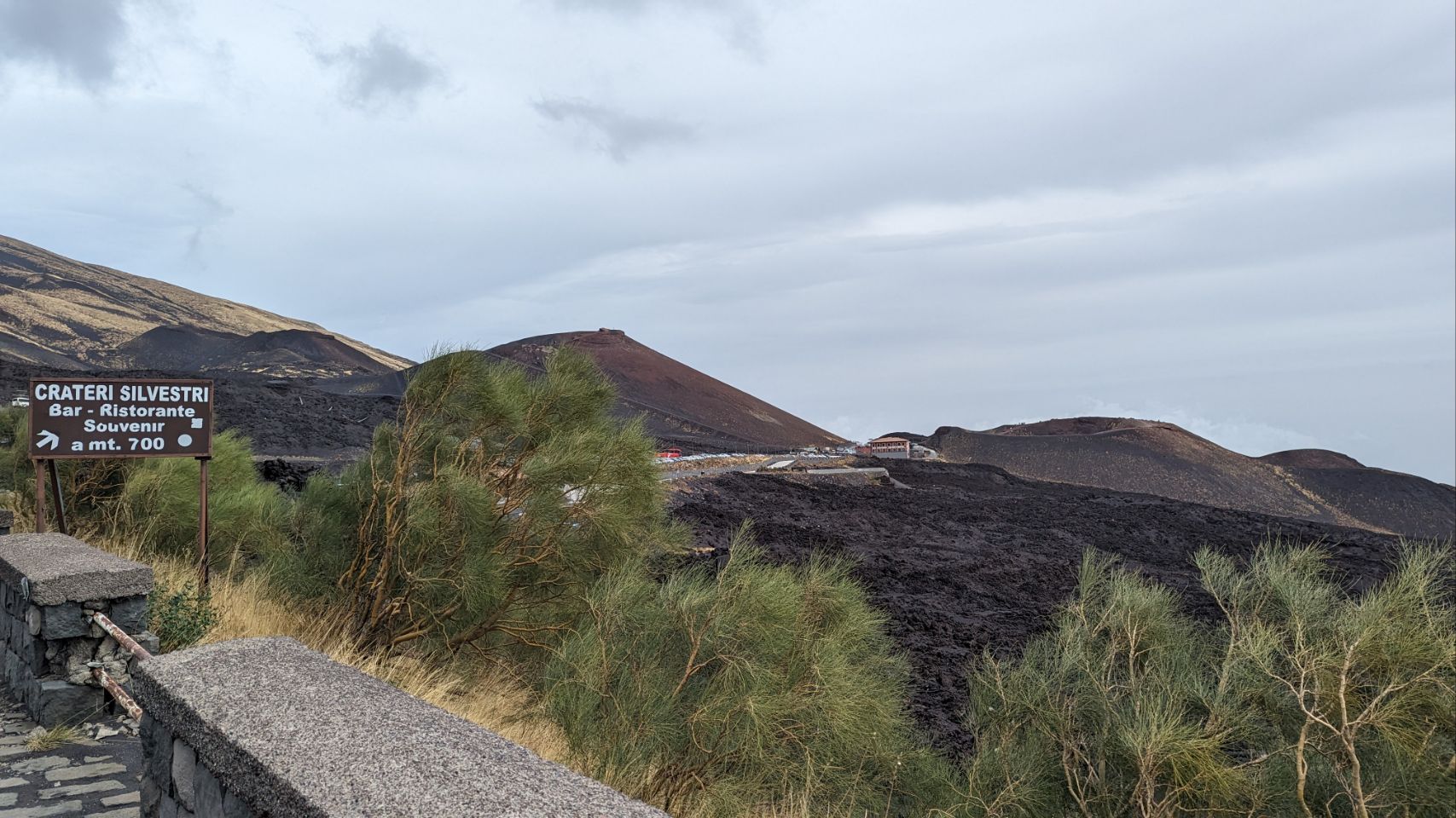Der Wind nervt leider total und es fängt zwischendurch auch an zu tröpfeln, daher kaufen wir nur schnell noch in einem der unzähligen Souvenirshops einen Etna- Aufkleber für unsere Tür und verpieseln uns schnellstens ins Tal.