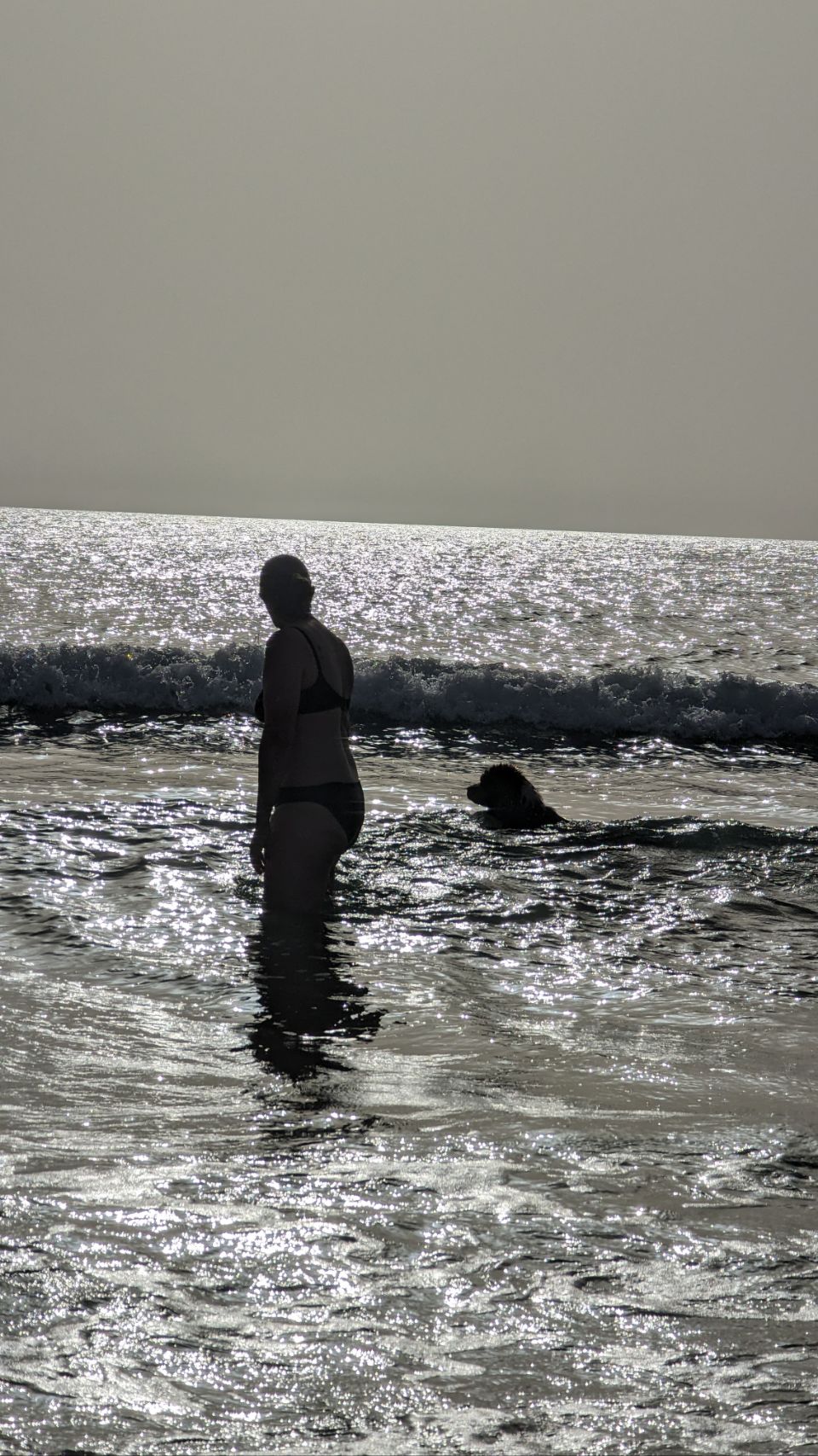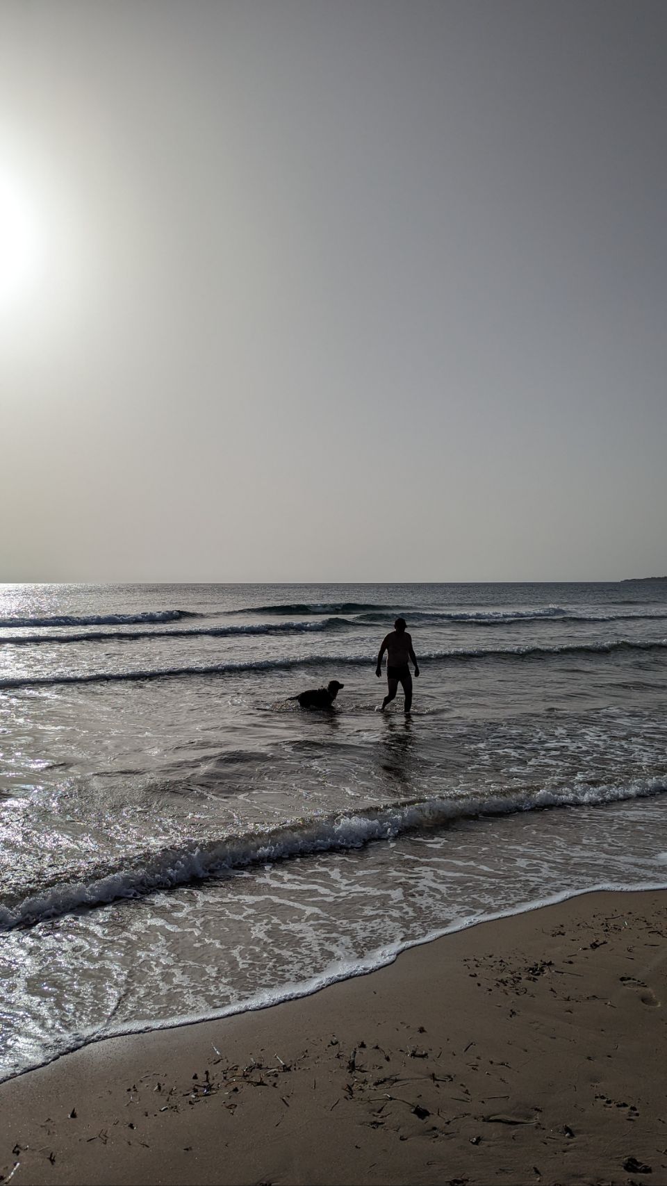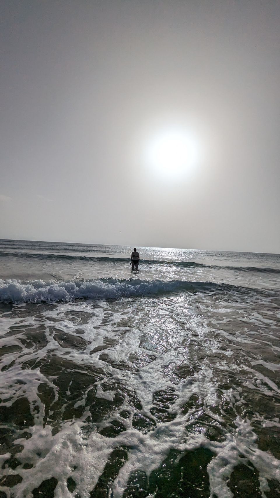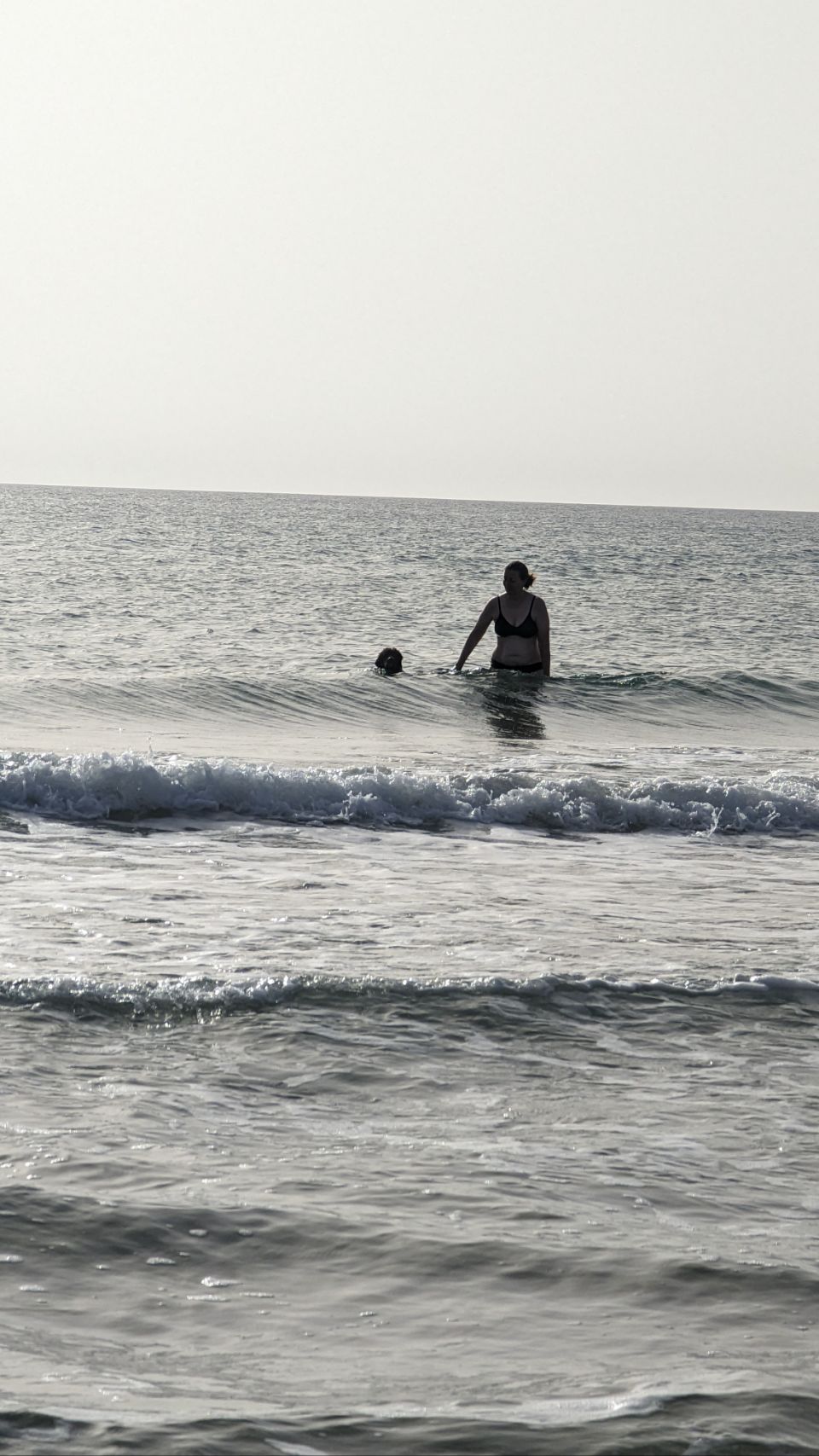 Nach dem Einparken und Sortieren erste Amtshandlung: ab ins Meer. Wir haben über 27°, in der Sonne gefühlt noch mehr ☀️😎🥵…