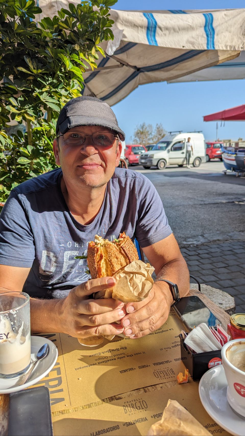 Weil’s so schön ist gehen wir zum Frühstücken noch ein drittes Mal über die Brücke und es gibt in einem tollen Laden direkt am Markt leckere Panini 😋🥖 und Cappuccino. Um diese Uhrzeit wird man auch noch nicht als Tourist erkannt, wenn man einen Cappuccino bestellt (nicht, dass uns andere Details nicht auch verraten wurden…).