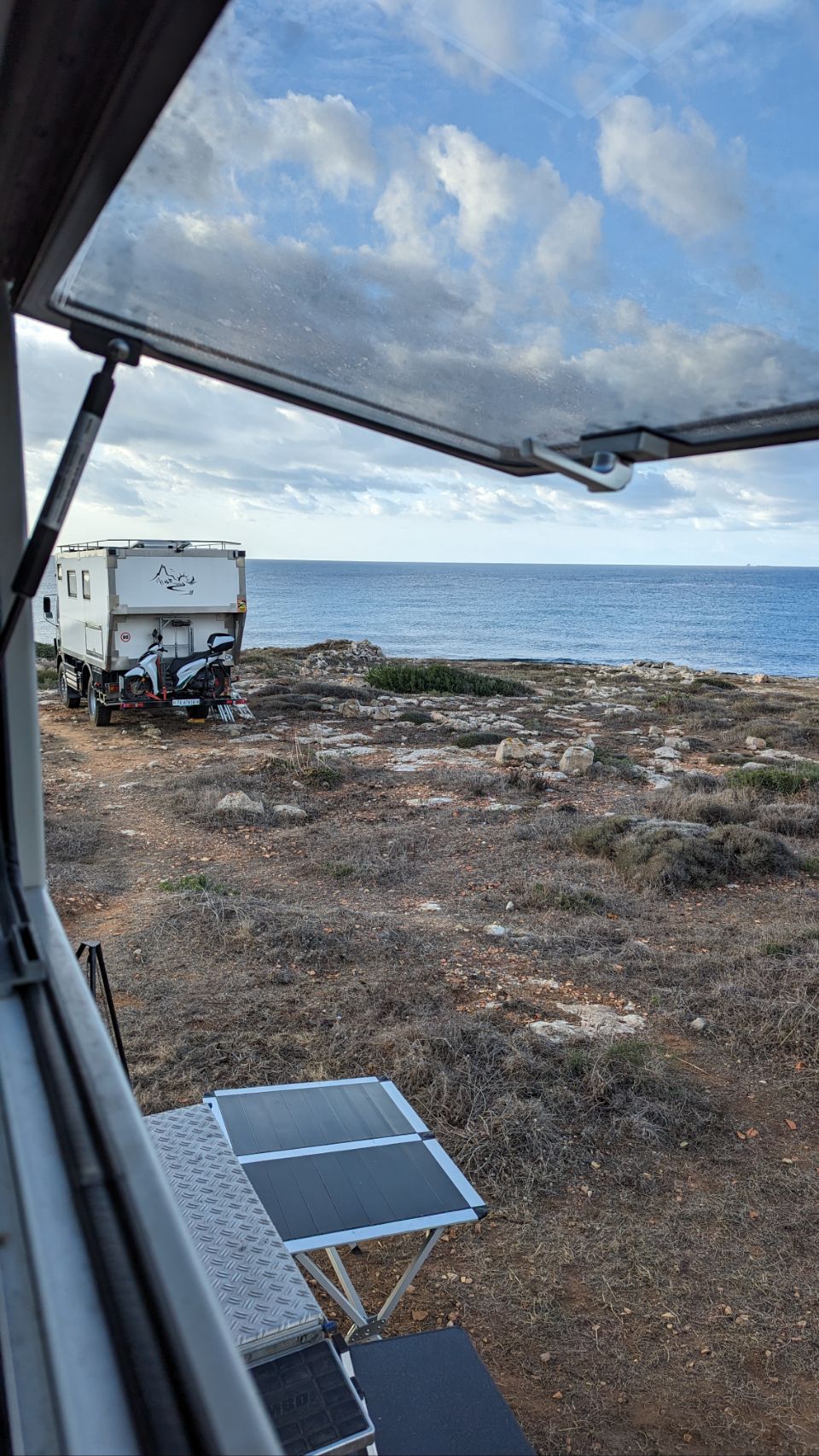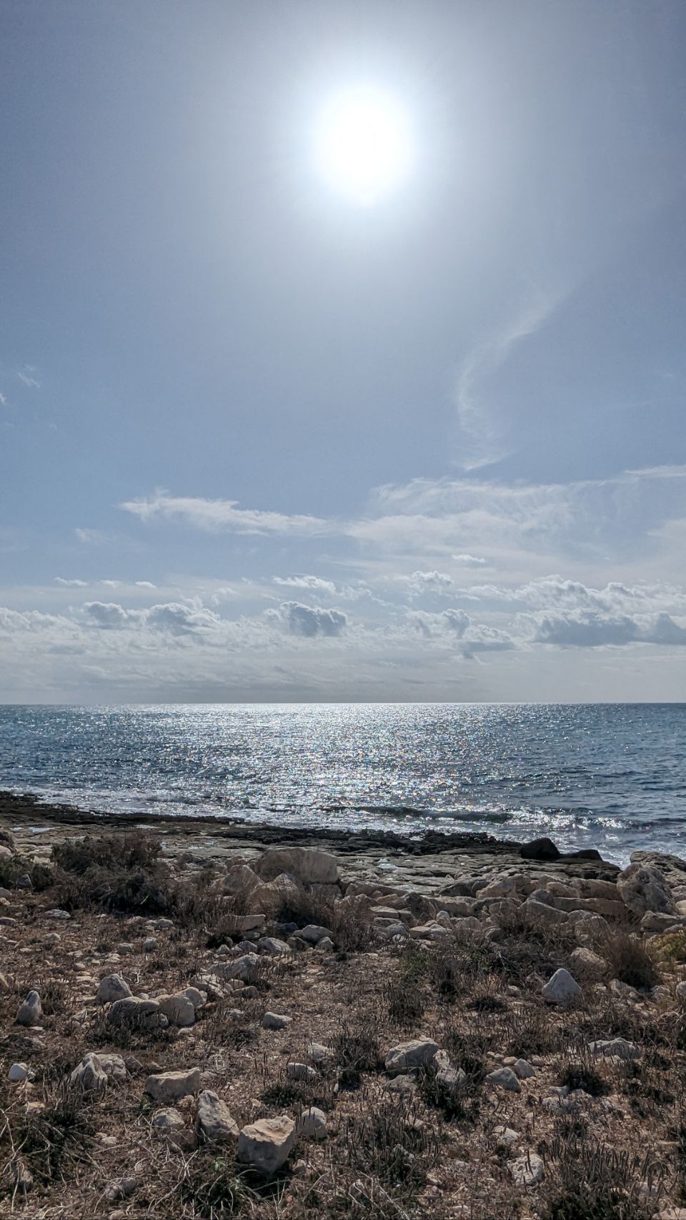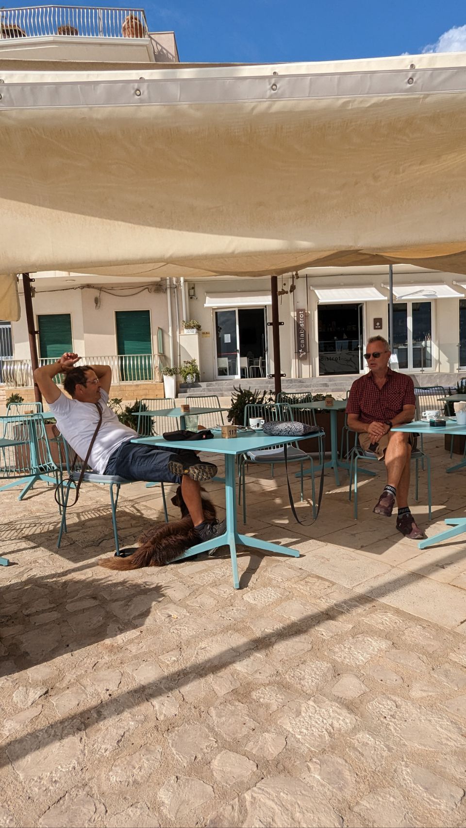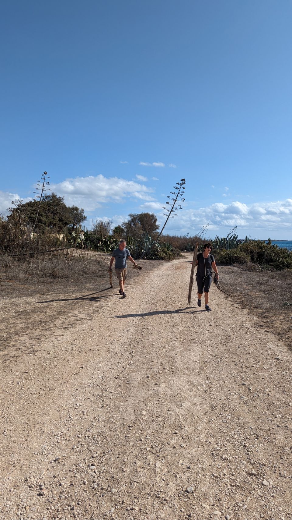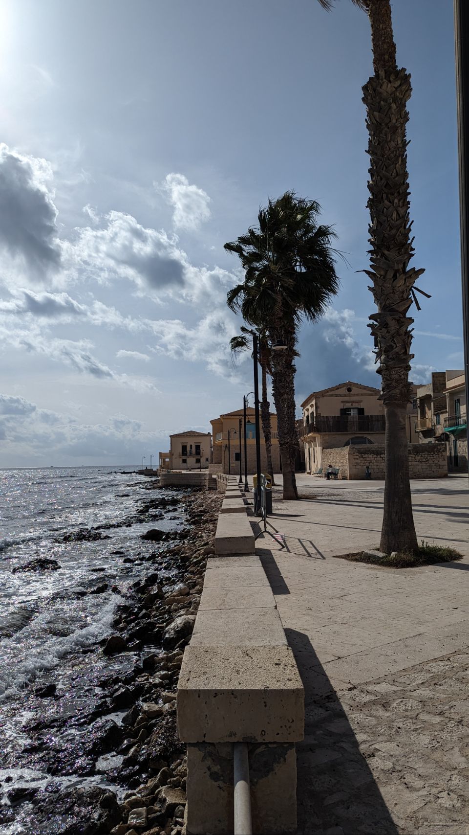 In Sampieri ist natürlich saisonbedingt so gut wie nix los, aber eine Bar auf der Strandpromenade hat geöffnet, so dass nicht allein der Weg das Ziel ist, sondern es für die fleißigen Spaziergänger auch Cappuccino und sehr guten Kuchen gibt 😃.