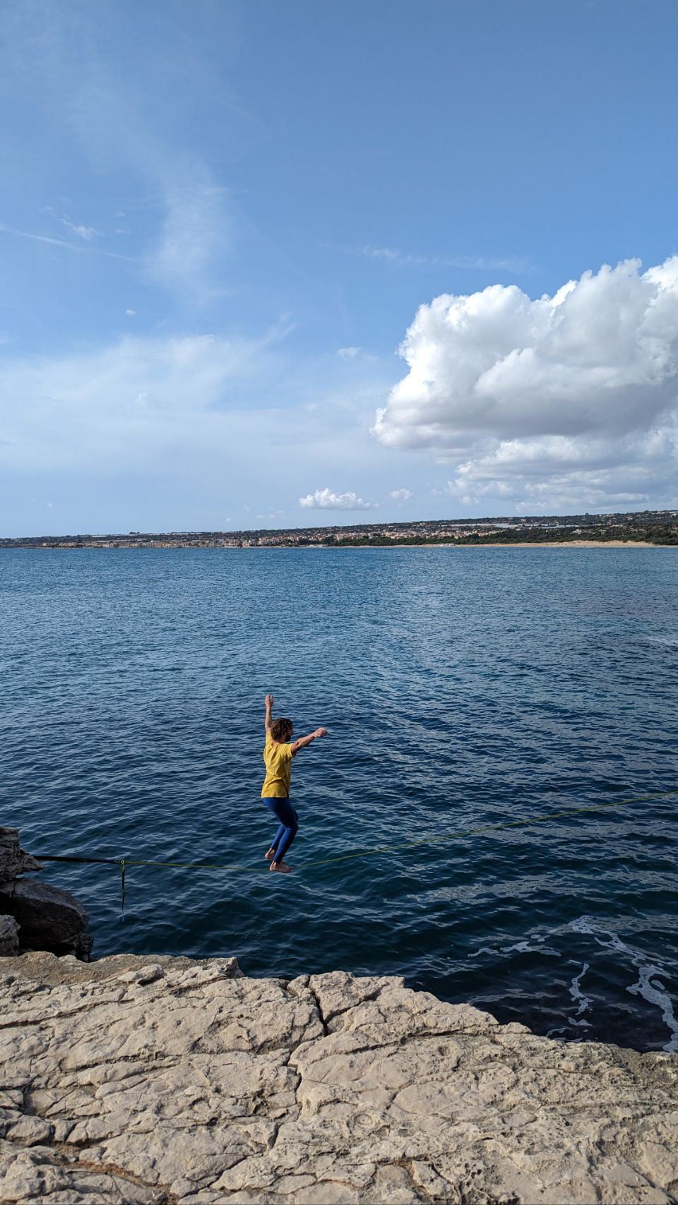 P.S.: Auf dem Rückweg von Sampieri haben wir kurz dem jungen Mann auf der Slackline, die er über dem Wasser von Fels zu Fels gespannt hat, zugesehen 👏🏼 sehr cool 😎.
