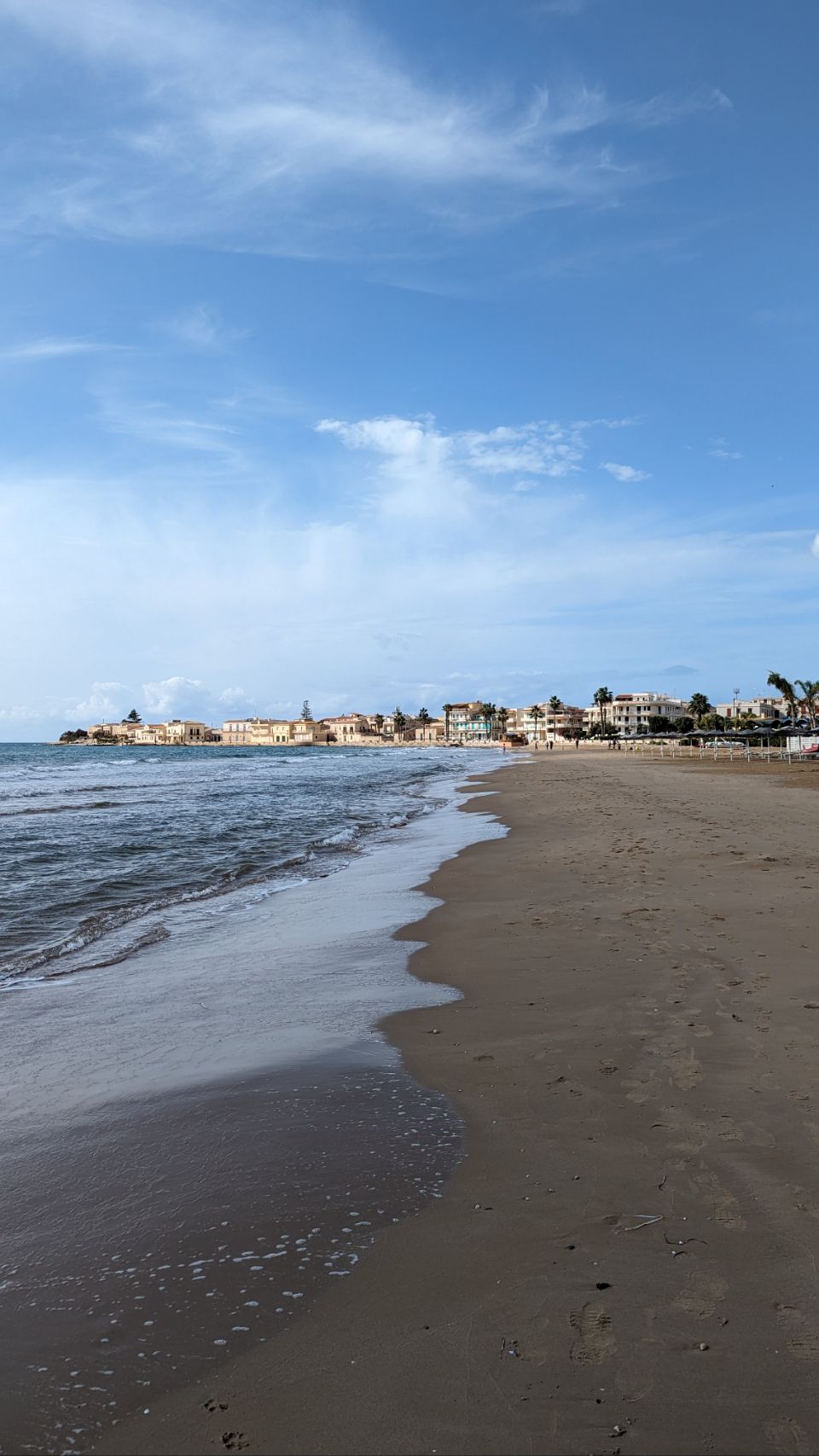 Heute machen wir zusammen einen Spaziergang am Strand entlang in den kleinen Badeort Sampieri.