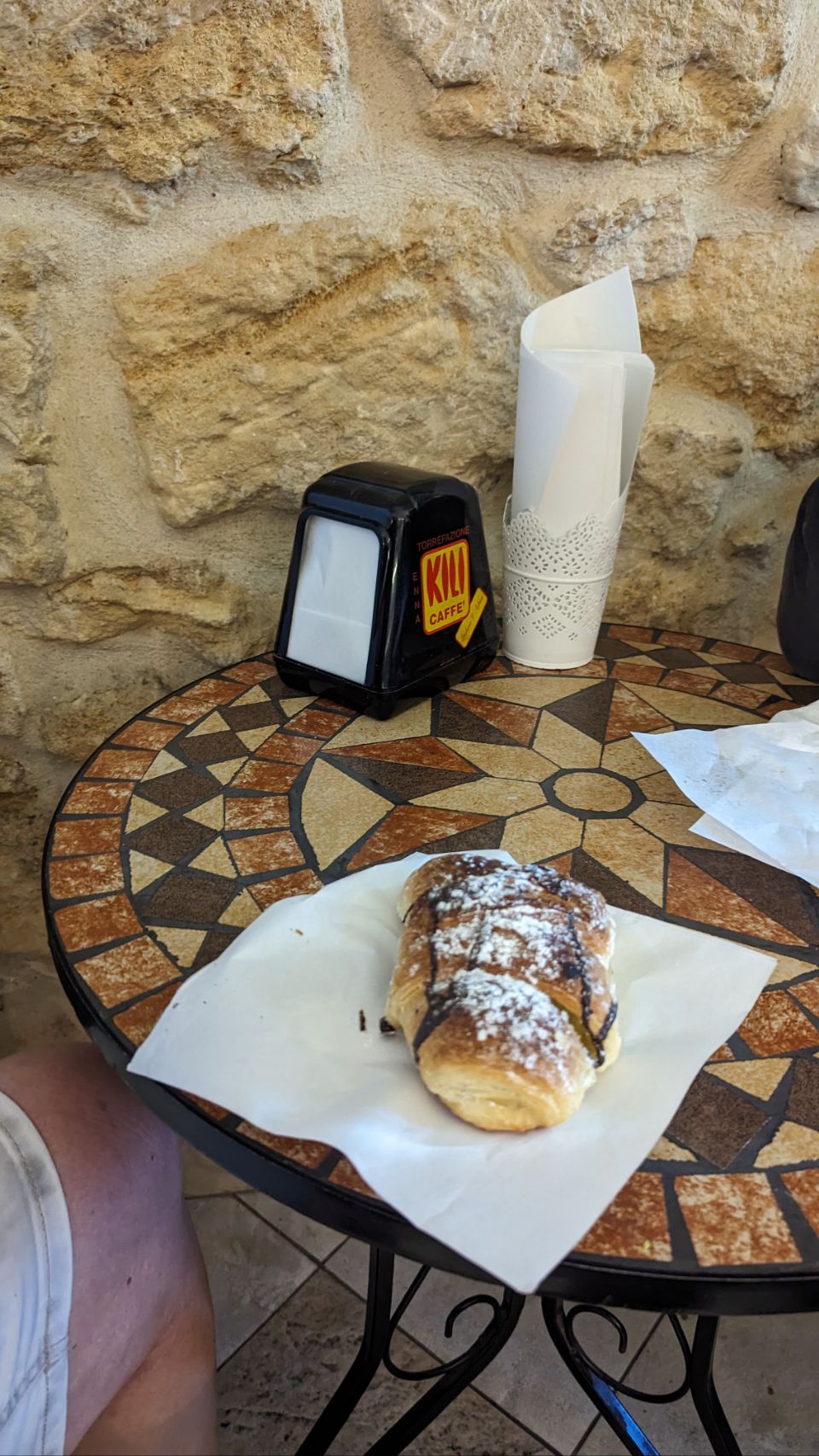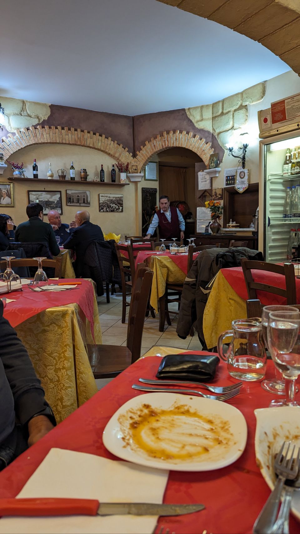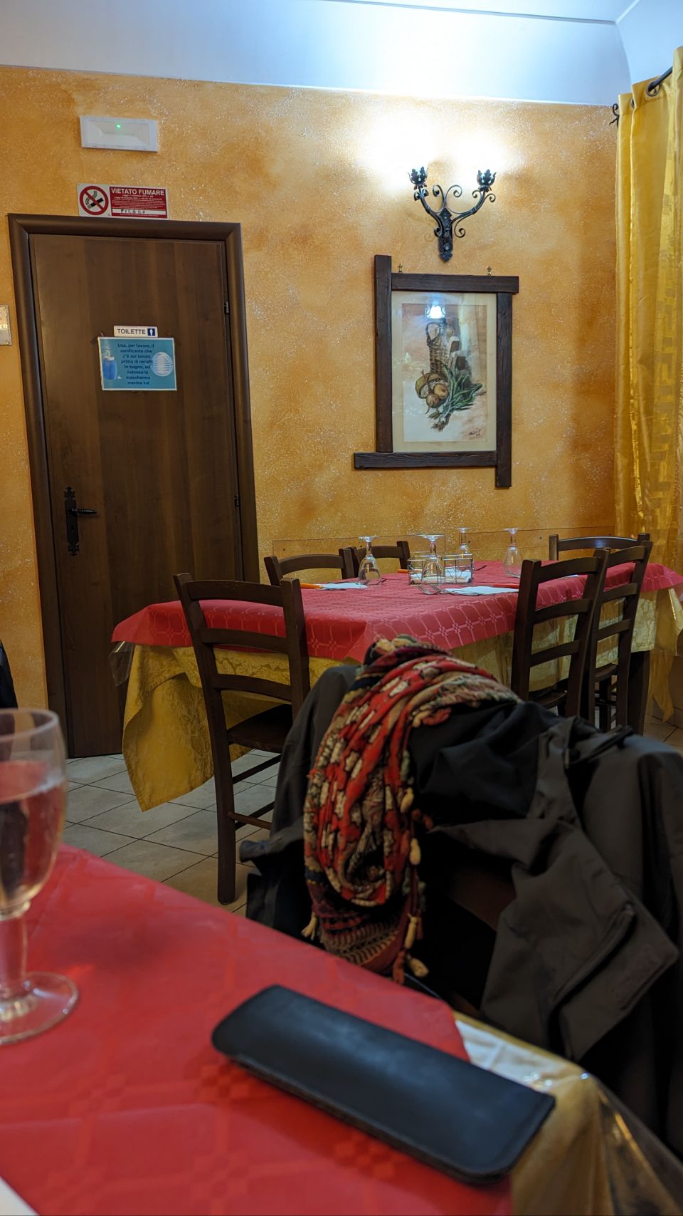 Zum Abendessen gehen wir in ein uriges kleines Lokal, was wir so gar nicht entdeckt hätten, wenn wir es nicht vorher auf Google Maps gefunden hätten. Wir wollen eigentlich nicht, aber der Chefe „empfiehlt“ uns so eindringlich eine bestimmte sizilianische Vorspeise, dass wir uns – glücklicherweise – überreden lassen. Es gibt Caponata, ein Gemüsegericht mit hauptsächlich Auberginen, Tomaten in süßsaurer Sauce, ähnlich wie eine Barbecuesauce, mit Knoblauch und Gewürzen… super lecker 😋!