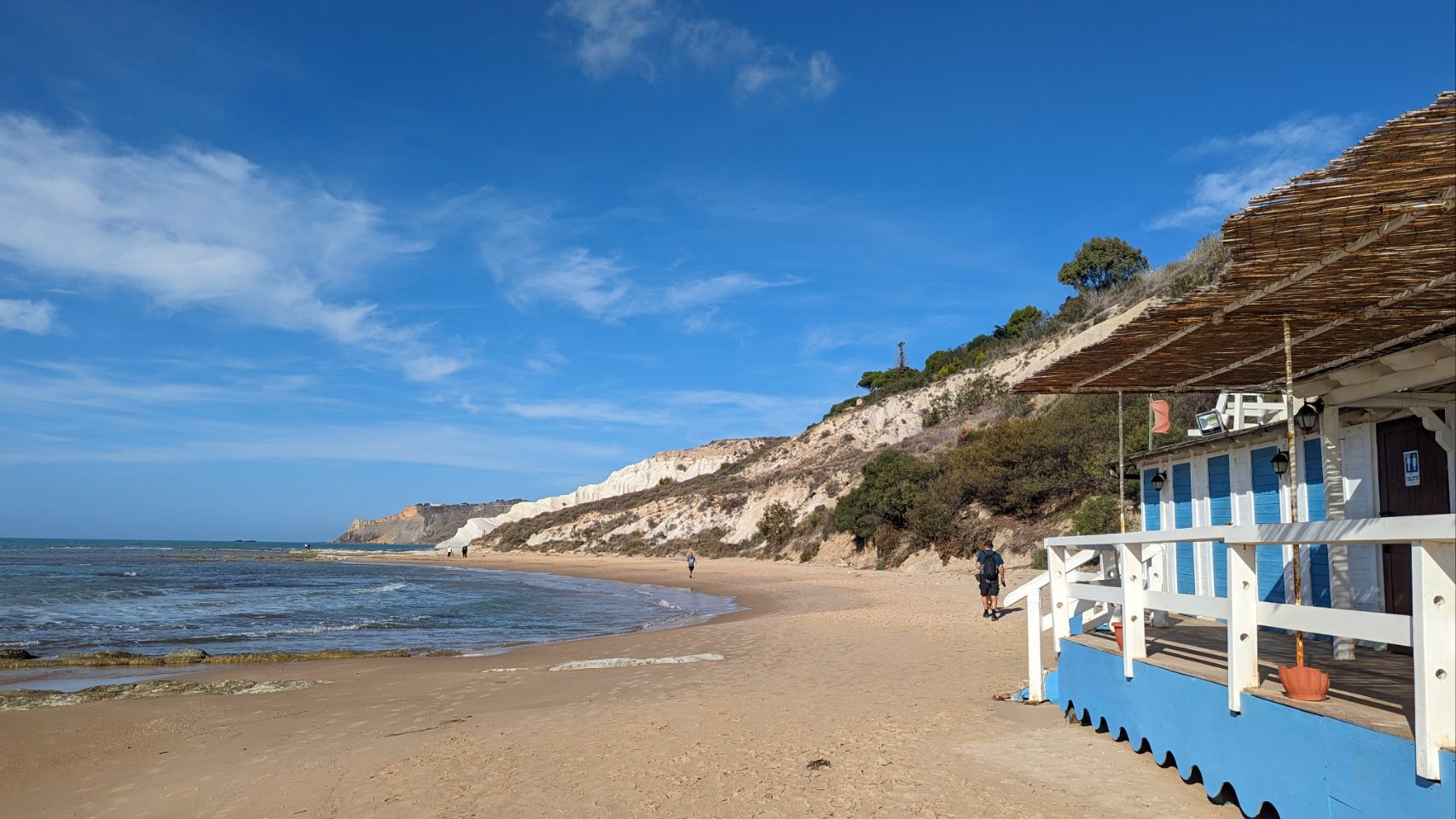Dieser weiße Felsen ist zwar ein bisschen größer als die Punta Bianca und auch ein schönes Fotomotiv, aber auch deutlich touristischer und deswegen gar nicht mehr direkt zugänglich. Unser Favorit ist die Punta Bianca – so gut wie nix los und man kann überall rumklettern.