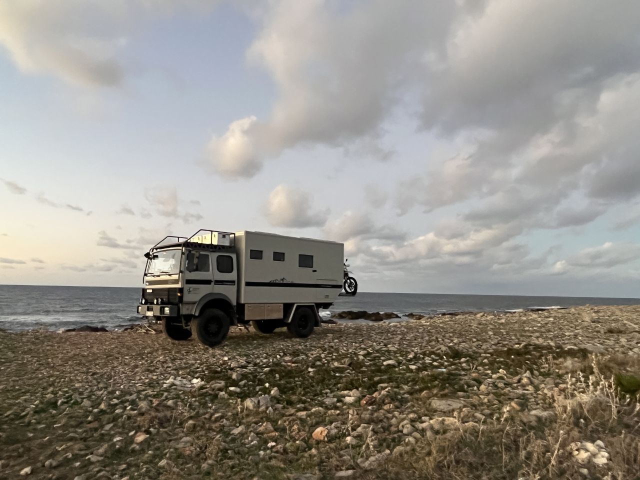 Thom fährt aber lieber selber weiter und nach einem langen Fahrtag erreichen wir unser kleines Paradies für die nächsten (letztlich werden es 8) Tage. Ein wirklich geiler Platz im Gelände, direkt am Meer in der Nähe des Leuchtturms – traumhaft schön!!!