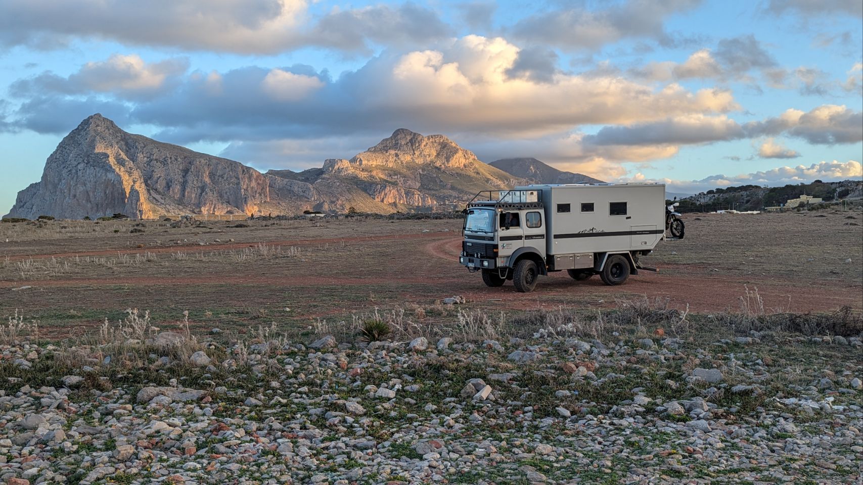 Eigentlich steht noch Cefalu auf unserer Liste, andererseits wollen wir gerne noch ein paar Tage am Strand verbringen. Da die Wetterprognose tendenziell in den nächsten Tagen schlechter wird (… naja, was heißt schlechter, mehr Wolken, Wind und auch z. T. Regen …), beschließen wir Cefalu zu skippen und direkt nach San Vito Lo Capo zu fahren, dort soll es sehr schön sein. Also müssen wir heute knapp 200 km machen – die sind glücklicherweise nicht alle so, wie auf der ersten Etappe raus aus dem Nationalpark…