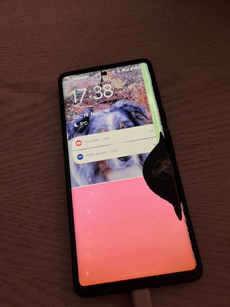 Was ist passiert? Das Handy ist gefallen, aus Versehen natürlich, und leider frontal auf einem spitzen Stein gelandet ➡️ Display = Schrott!