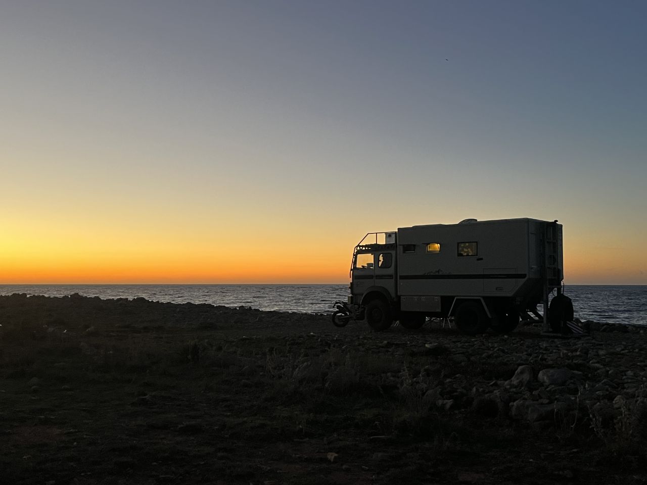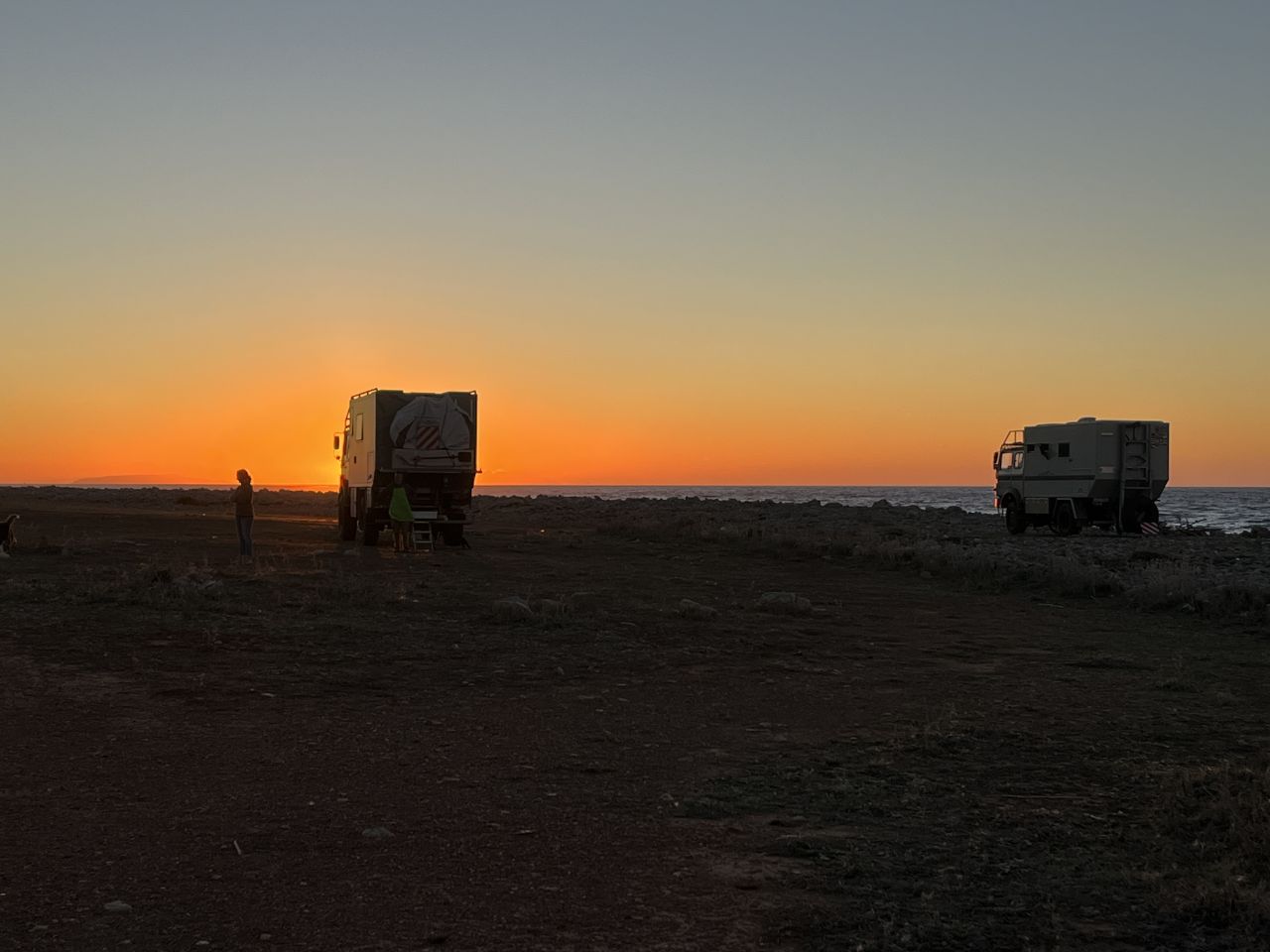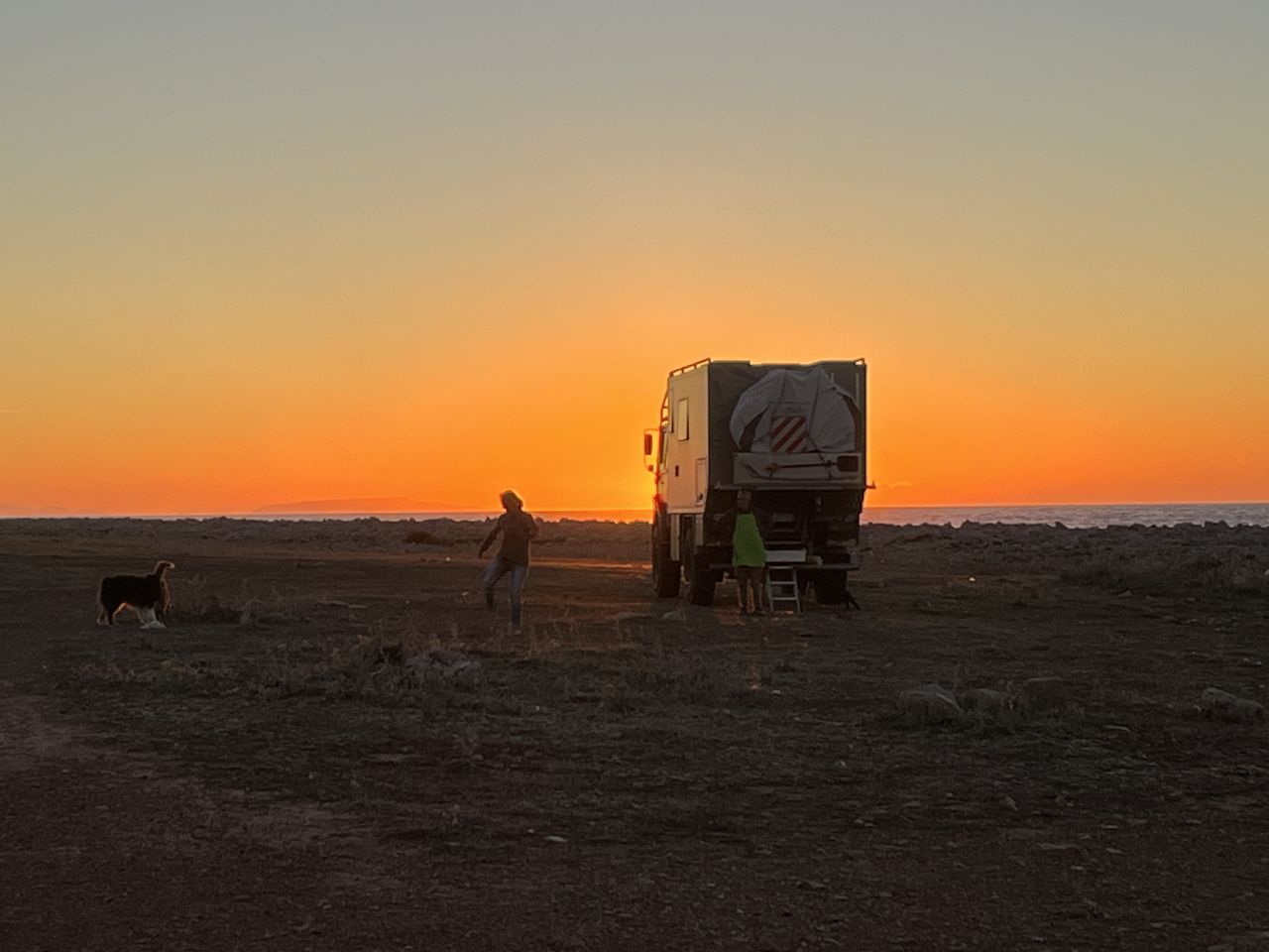 Dafür können wir noch ein Foto von Terese und Achim machen, die uns zufällig über den Weg laufen – oder wir ihnen. Das sind die beiden, die wir auf dem Campingplatz Mons Gibel „gerettet“ haben, als sie sich dort festgefahren hatten.