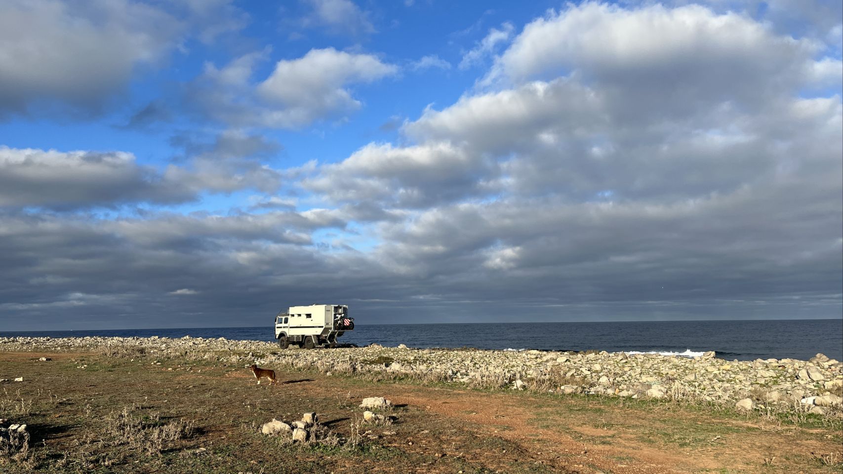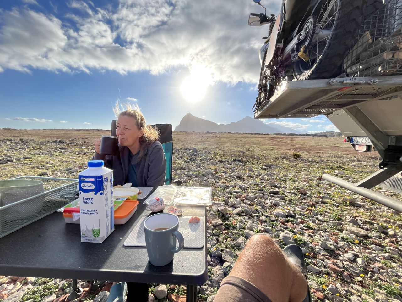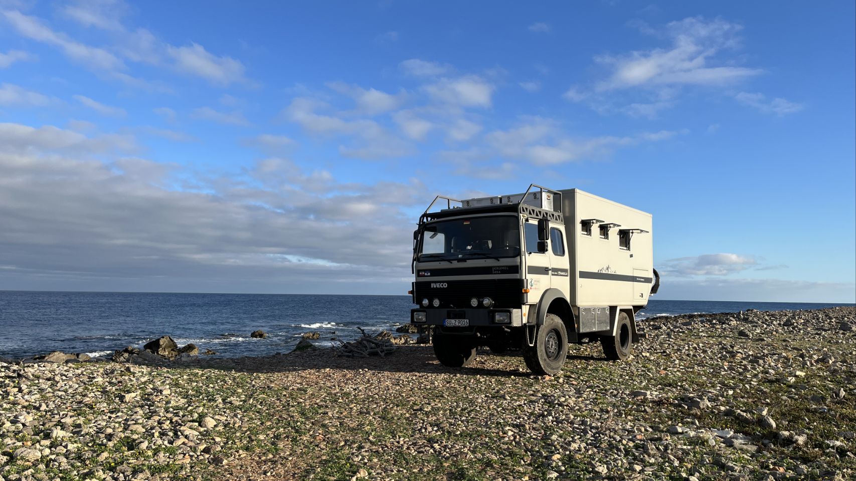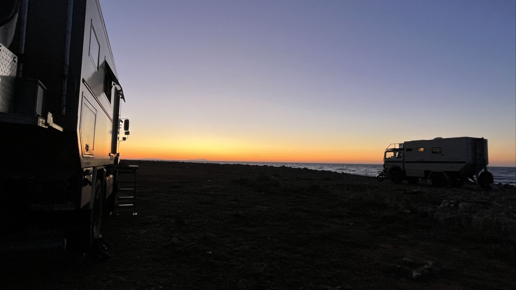 Dafür können wir noch ein Foto von Terese und Achim machen, die uns zufällig über den Weg laufen – oder wir ihnen. Das sind die beiden, die wir auf dem Campingplatz Mons Gibel „gerettet“ haben, als sie sich dort festgefahren hatten.