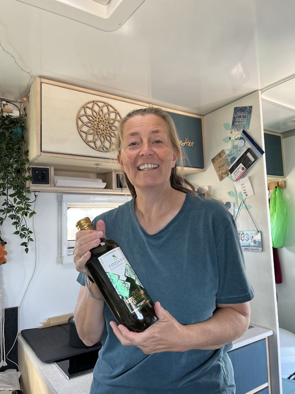 Auf dem Rückweg sammelt Thom noch einen Liter Olivenöl von einer lokalen Oleificio (Ölpresse) zum Testen – unser Vorrat aus Griechenland ist mittlerweile fast aufgebraucht.