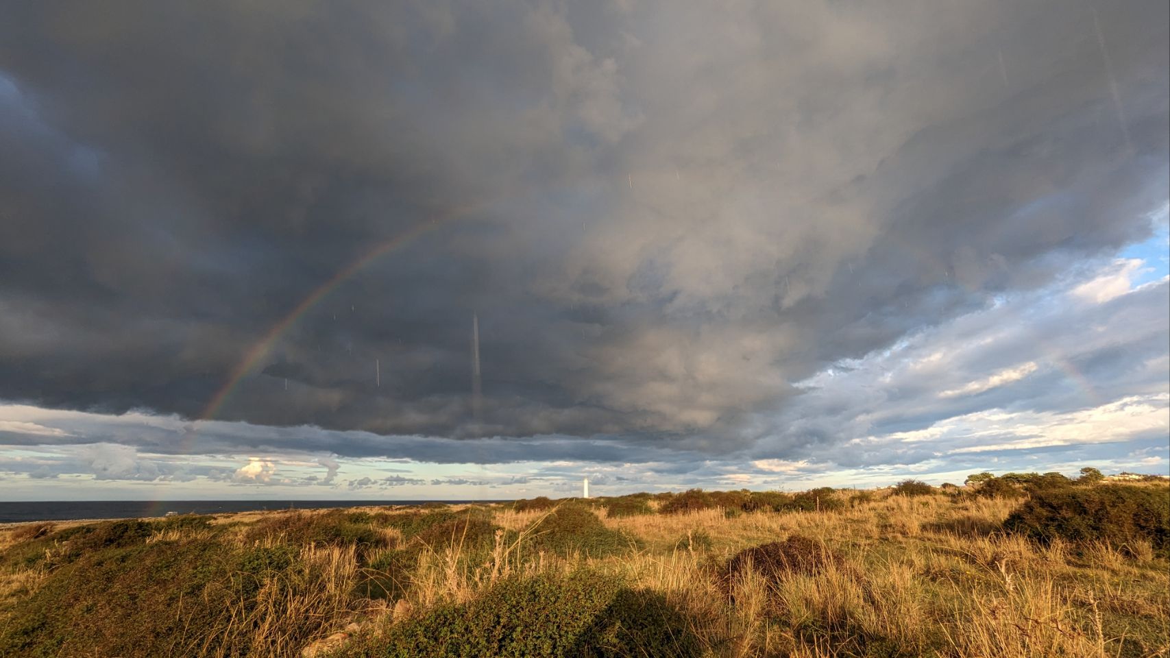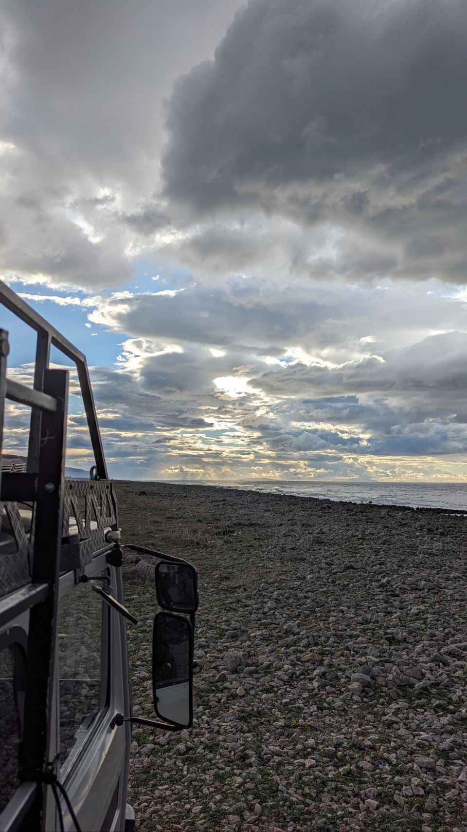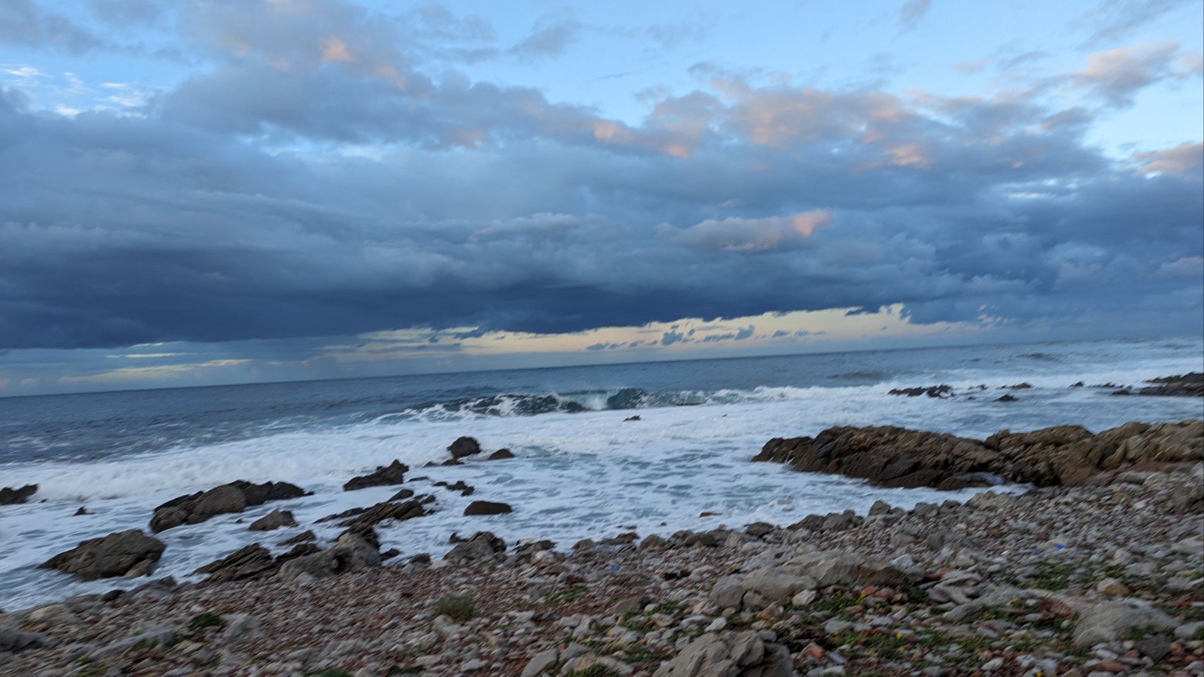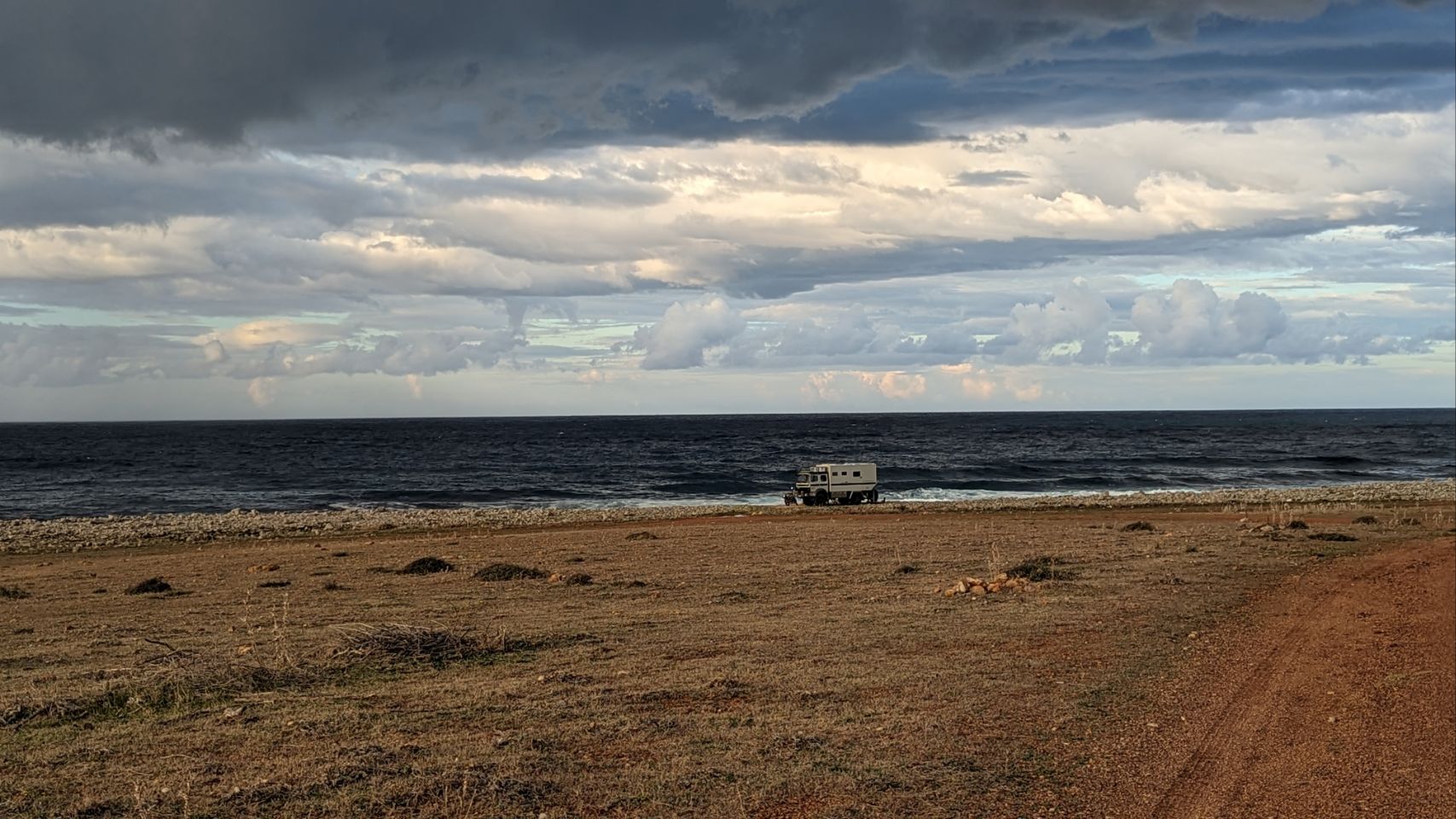 Der Sturm kommt näher, es regnet, wird windiger. Heute bleiben wir noch hier (und machen ganz viele Wellen- und Wetterfotos – das Pixel muss ja ordentlich getestet werden 😉), morgen soll es richtig heftig werden, dann verziehen wir uns irgendwo hin, wo es windgeschützt ist.