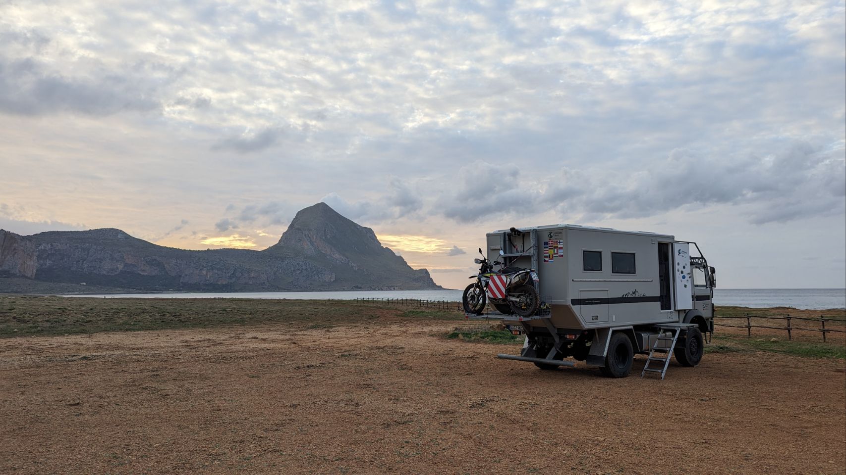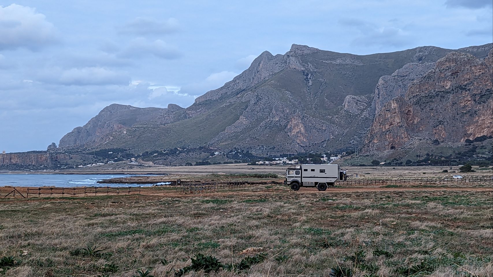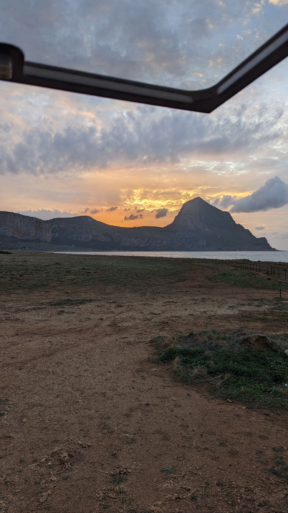 Wir fahren aber schon mal ganze 8 km weiter an den nächsten Platz, weil wir dort morgen noch eine Wanderung um den Monte Cofano machen wollen. Der Platz ist wieder echt cool, am Meer mit tollem Blick auf unser morgiges Wandergebiet.