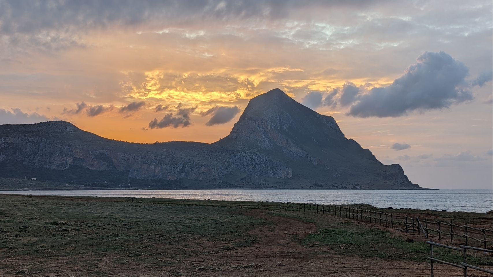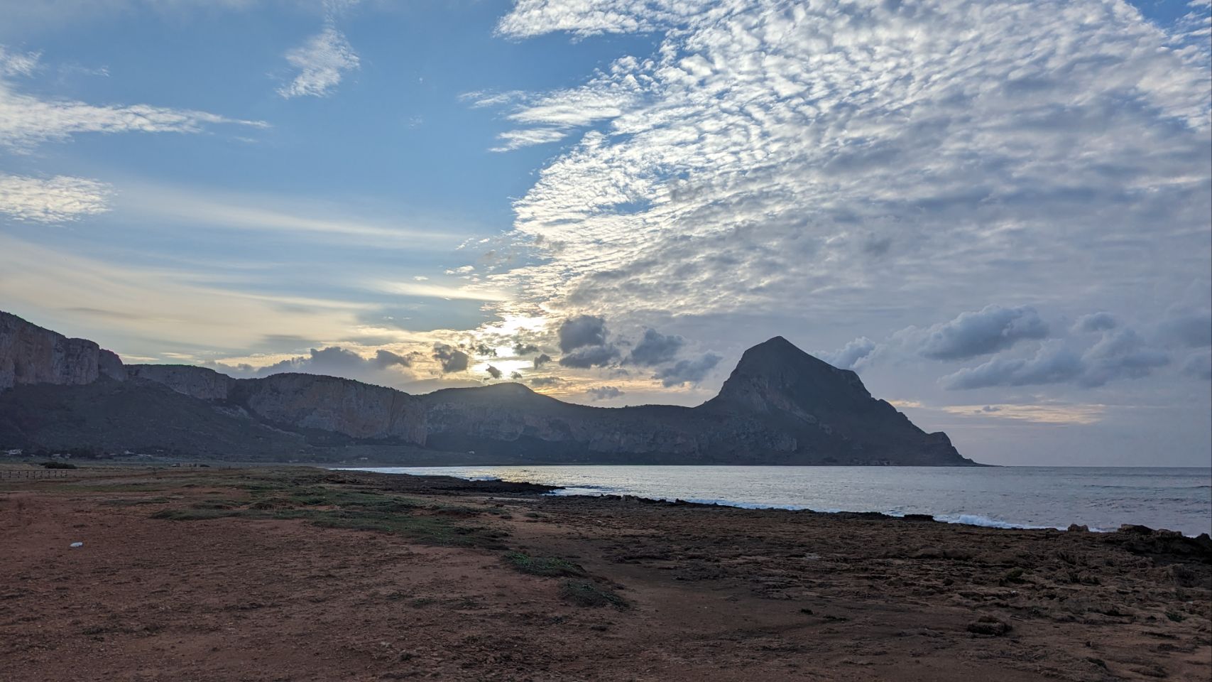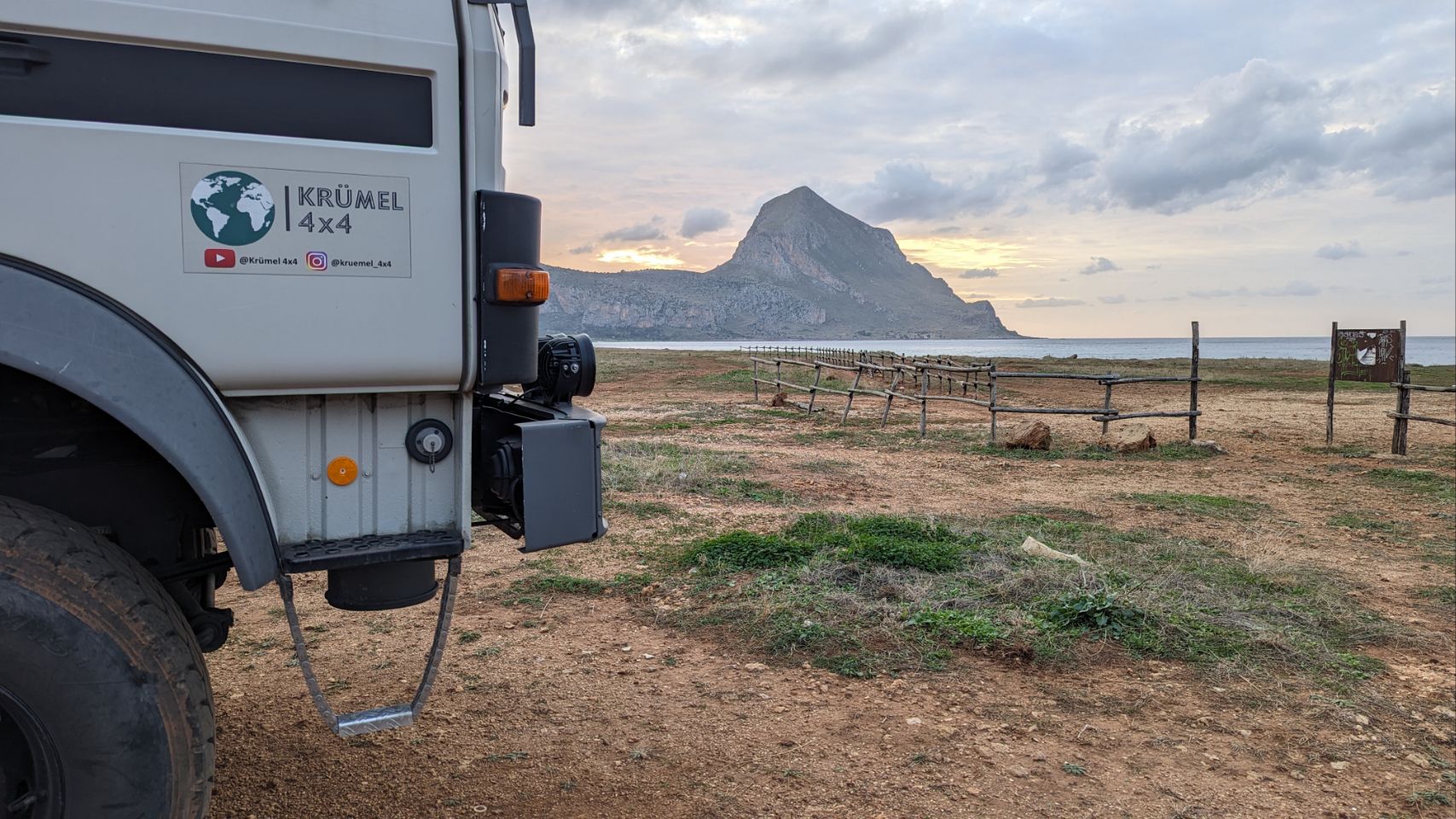 Wir fahren aber schon mal ganze 8 km weiter an den nächsten Platz, weil wir dort morgen noch eine Wanderung um den Monte Cofano machen wollen. Der Platz ist wieder echt cool, am Meer mit tollem Blick auf unser morgiges Wandergebiet.