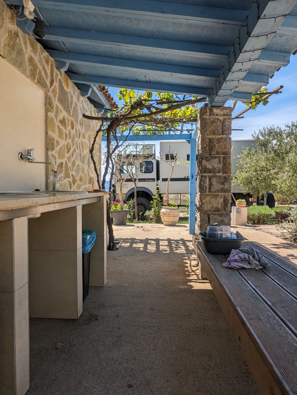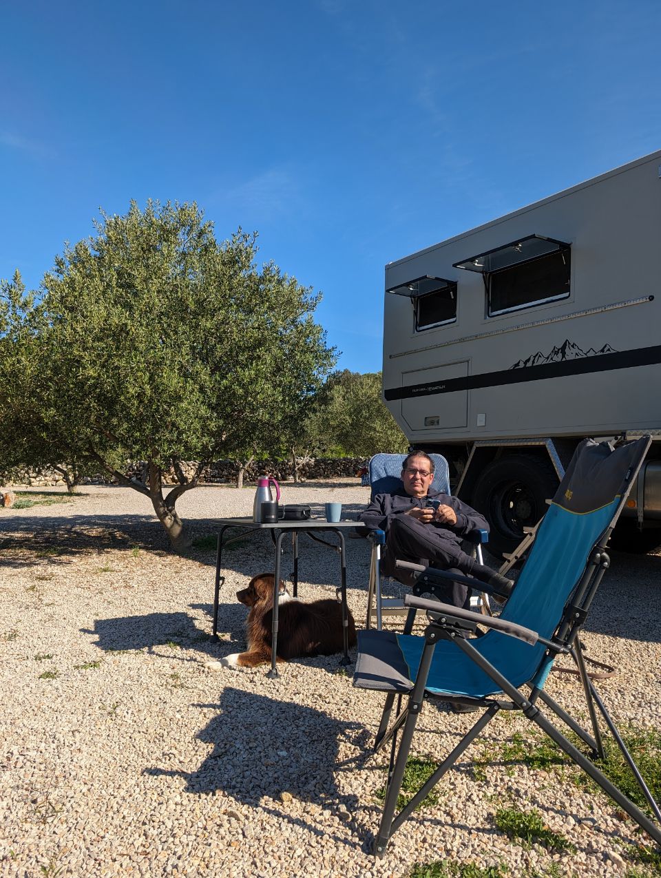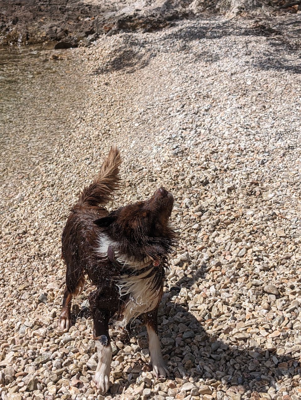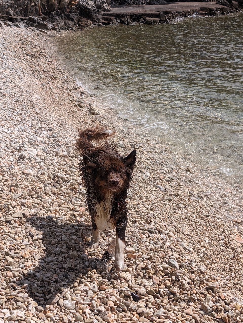 Anschließend macht jeder heute was er will 😜… Naja, Geschirr spülen will ich nicht wirklich, aber danach habe ich Zeit und Muße zum Lesen in der Sonne. Cuba will natürlich schwimmen 🐶💦 und Thom macht ein Tourchen mit der XT 🏍️ und erkundet die Insel Krk.