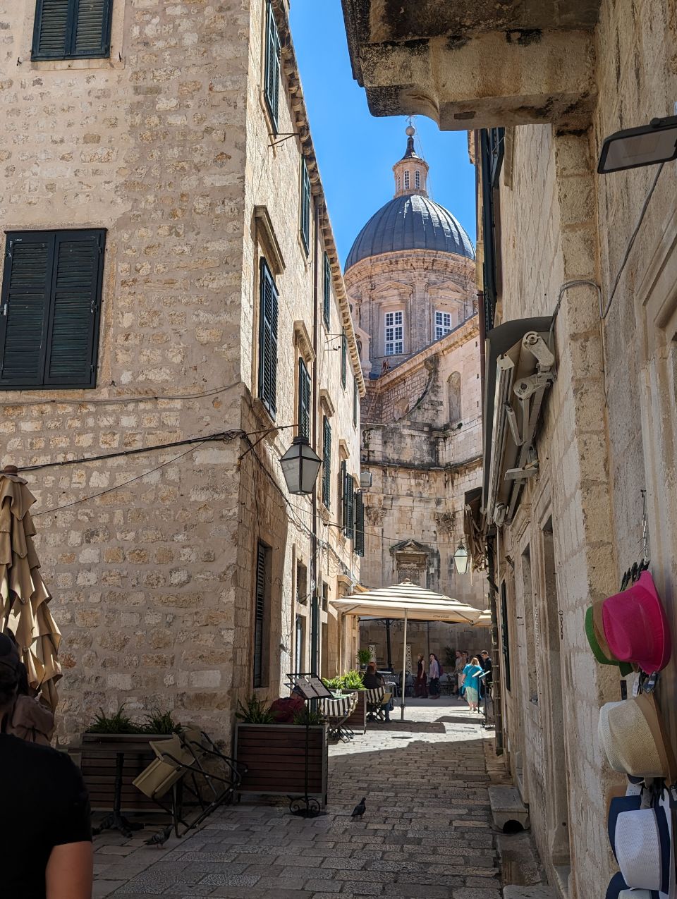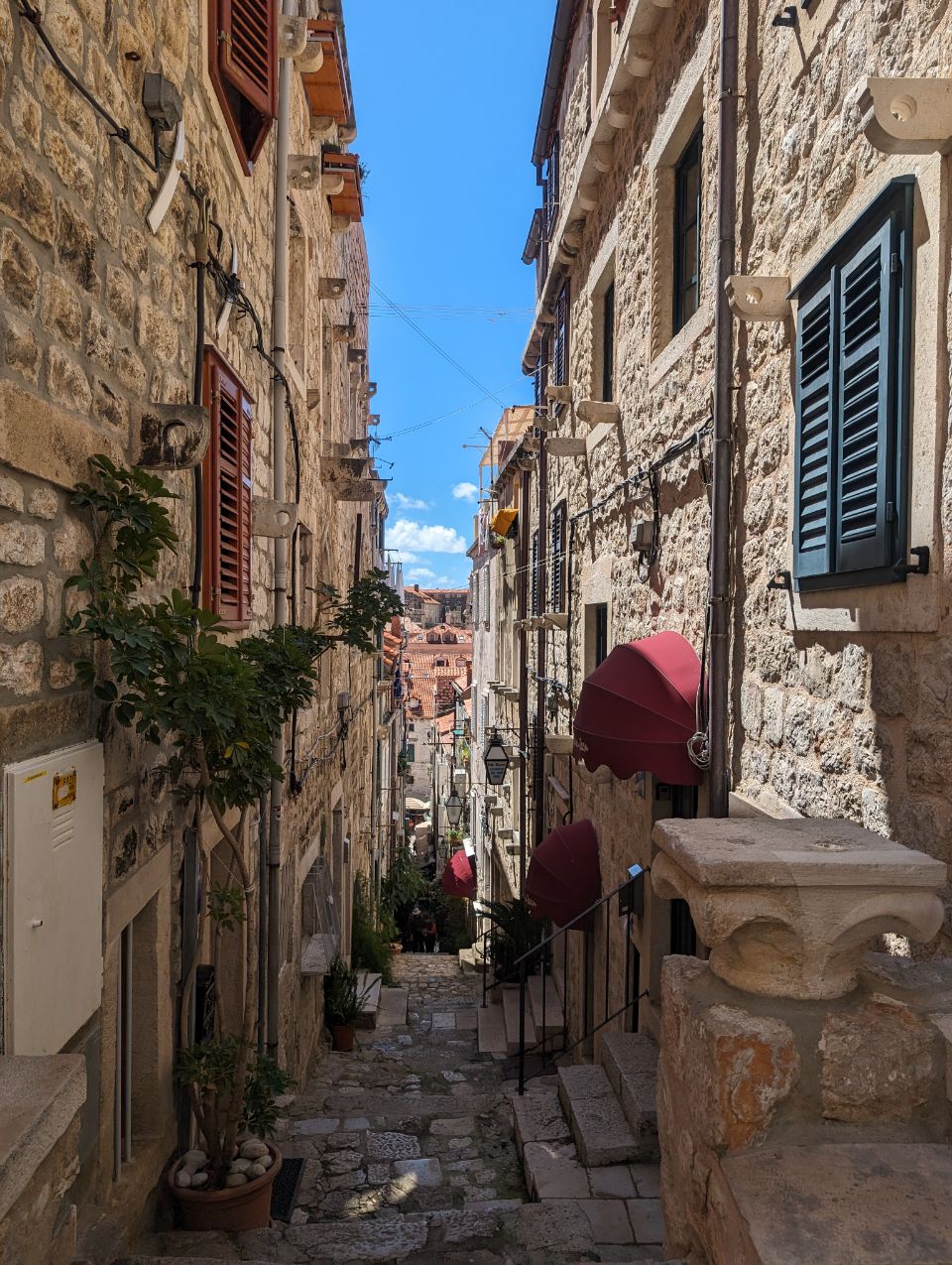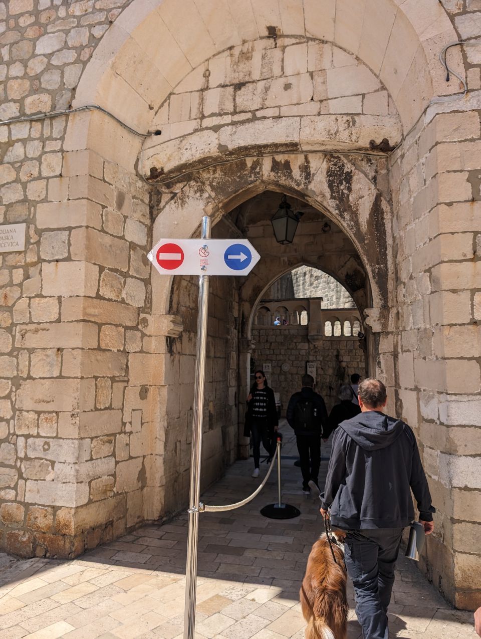 Wir haben gut geschlafen mitten in Dubrovnik und nach dem ersten Kaffee im Krümel machen wir uns mit unserem Picknick im Rucksack auf den (kurzen) Weg in die Altstadt. Ein Stück die Straße entlang, die Treppe runter zum Meer und dann noch ein bisschen geradeaus und schon sind wir da. Wir betreten die „Perle der Adria“ durch einen Durchgang in der Stadtmauer, diese ist eine der besterhaltenen Festungsanlagen in Europa und man kann auf dem Mauerring einmal rund um die Stadt laufen – sofern man dafür 35 Euro bezahlen möchte 🤔 – pro Person wohlgemerkt… 🤑…