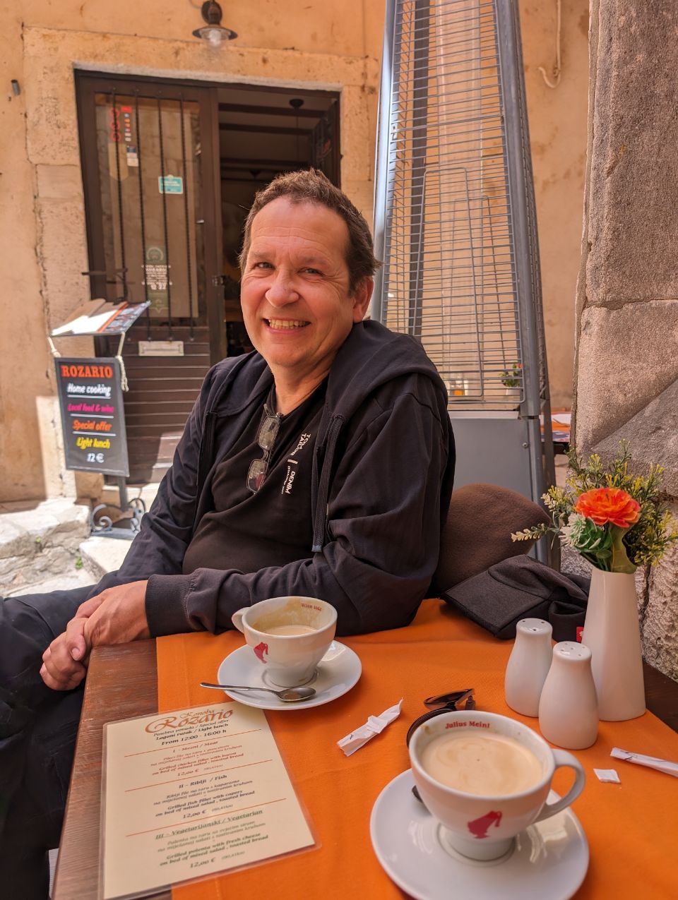 Natürlich werden wir letztlich doch nochmal schwach und gönnen uns einen Cappuccino, heute aber mal nicht in der ersten Reihe sondern in einem kleinen netten Café so ca. 3 Reihe und dafür dann doch noch bezahlbar (3 €).
