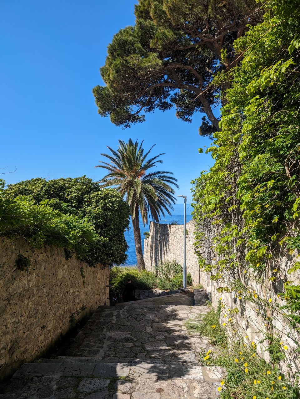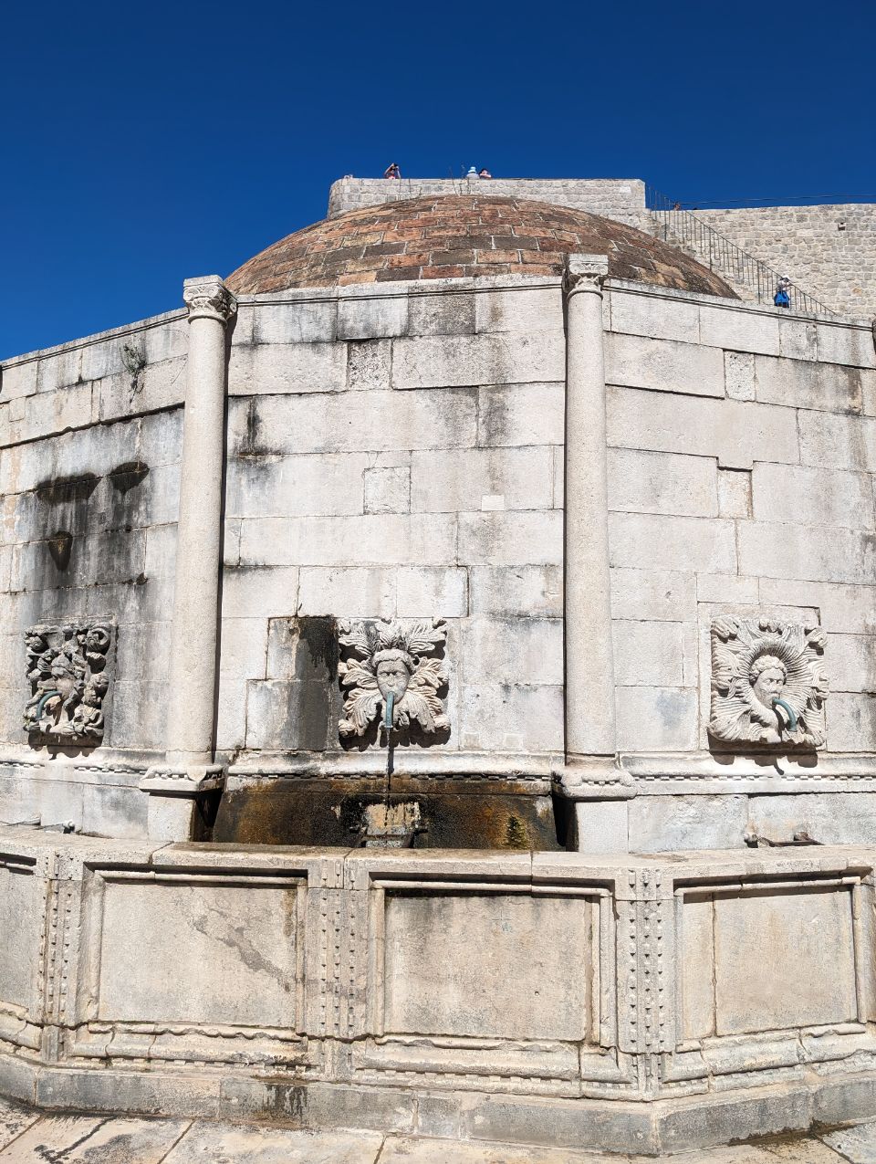 Möchten wir nicht, sondern wir lassen uns in bewährter Krümel-Weise ➡️#gowiththeflow 😉⬅️ durch die Straßen treiben — vorbei am Onofriobrunnen landen wir zuerst an einem Viewpoint jenseits der Mauer mit Blick auf die Bokar-Festung und machen unsere Frühstücks-Brotzeit bei strahlendem Sonnenschein mit Blick aufs Meer.