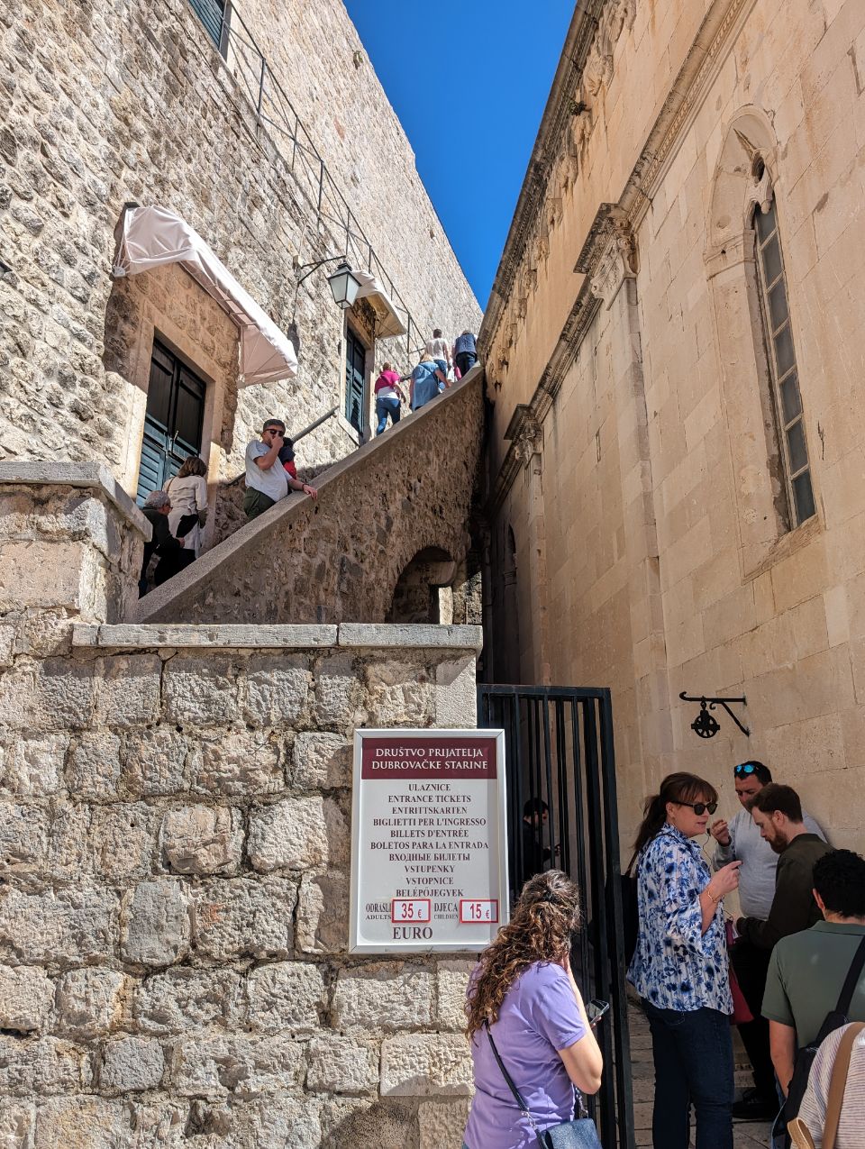 Es ist schon recht voll hier – ihr erinnert euch = drei Kreuzfahrtschiffe im Hafen – aber noch erträglich und die Menschen verteilen sich in der Vorsaison noch ganz gut (überraschend viel los ist tatsächlich auf der Stadtmauer – das muss man sich mal überlegen: eine Familie mit 2 Kindern zahlt mal eben 100 Euro Eintritt für die Stadtmauer 💰).