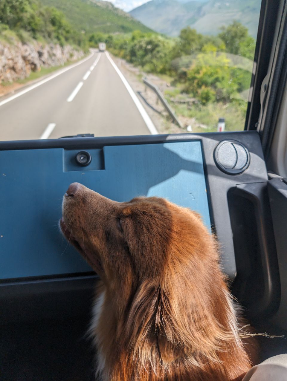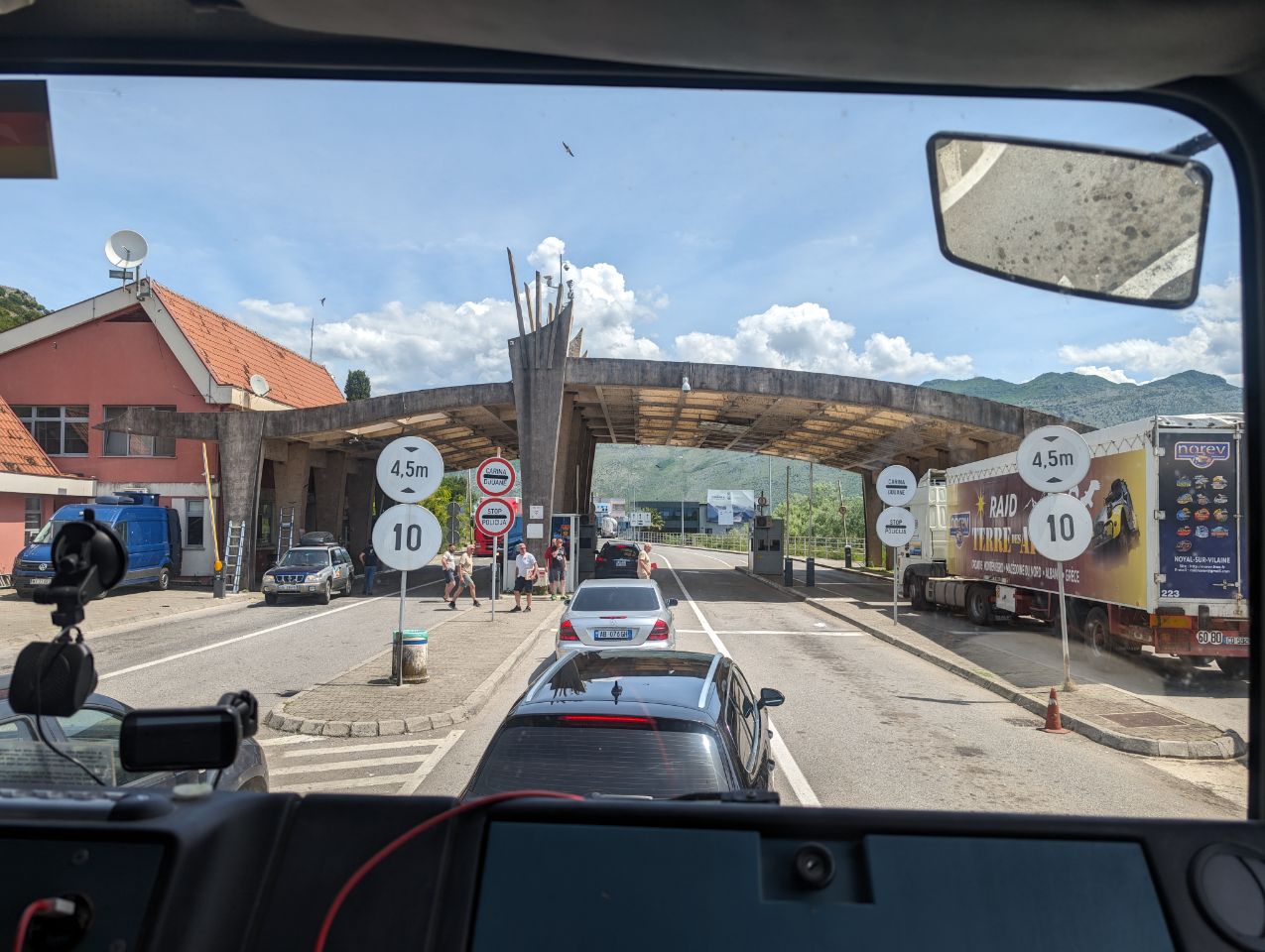 Schnell einen ☕ Kaffee – dann geht’s (für uns immer noch aufregend und keine Routine) zum nächsten Grenzübertritt 🇲🇪🛂🇦🇱…