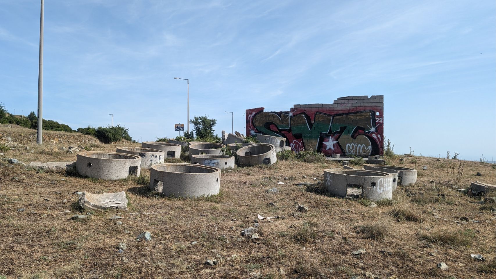 Gelegenheit für ein paar Fotos von diesem seltsamen Ort gibt es natürlich trotzdem – auf der Hunderunde und am Abend besuchen wir noch Nachbar Schildi 🐢 und machen vor Freude über die minimale Abkühlung ein paar Freudensprünge 🌄🥳…