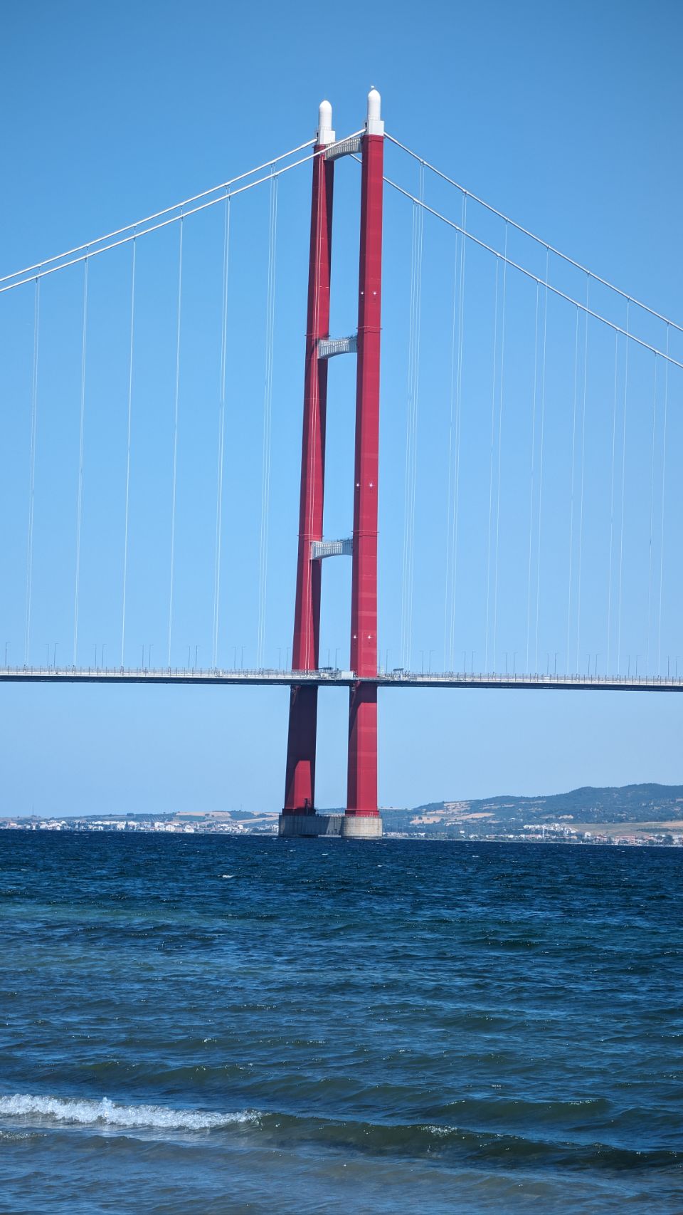 Die Brücke „1915 Canakkale“ bringt uns dann kurze Zeit später in den asiatischen Teil der Türkei. Ein wirklich spektakuläres Bauwerk, dass innerhalb von 5 Jahren vom ersten Spatenstich bis zur Eröffnung gebaut wurde 💪🏻 und außerdem ist es – gemessen an der Spannweite – die längste Hängebrücke der Welt (Spannweite 2023 m). Sie überspannt die Dardanellen, ersetzt eine Fährverbindung und steckt voller Symbolik: